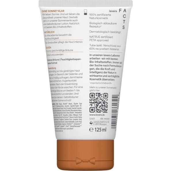 Lavera Loción Autobronceadora 125 ml es un producto diseñado para proporcionar un bronceado natural, uniforme y duradero, sin necesidad de exponerse al sol. Su fórmula ligera se absorbe con rapidez, dejando la piel hidratada y nutrida.