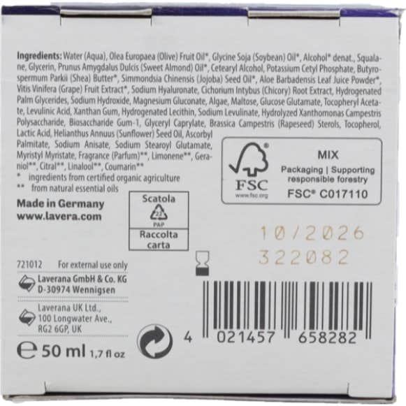 Además, Lavera se compromete con la sostenibilidad; su fórmula es biológicamente degradable y cuenta con la certificación NATRUE. El envase, excluyendo la tapa, está hecho de un mínimo del 30% de vidrio reciclado, y la caja de cartón está fabricada con un 100% de fibras recicladas sin tintes ni aditivos. También está certificada por PETA, reafirmando su compromiso con el bienestar animal.