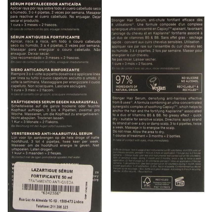 El sérum Stronger está compuesto en un 97 % por ingredientes de origen natural, es vegano, sin alcohol, siliconas ni aceites minerales. Su fórmula contiene 5 % de KAPILARINETM, 5 % de CAPIXYLTM y una combinación de vitaminas para frenar eficazmente la caída progresiva del cabello y estimular su crecimiento.