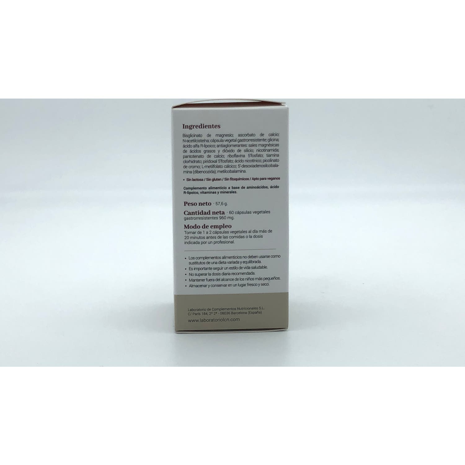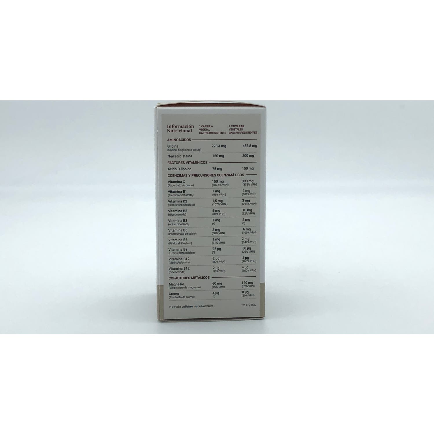 Reforzado con glicina, N-acetilcisteína y ácido R-lipoico, que contribuyen y ayudan al metabolismo de macronutrientes (carbohidratos, grasas y proteínas), homocisteína y hierro.