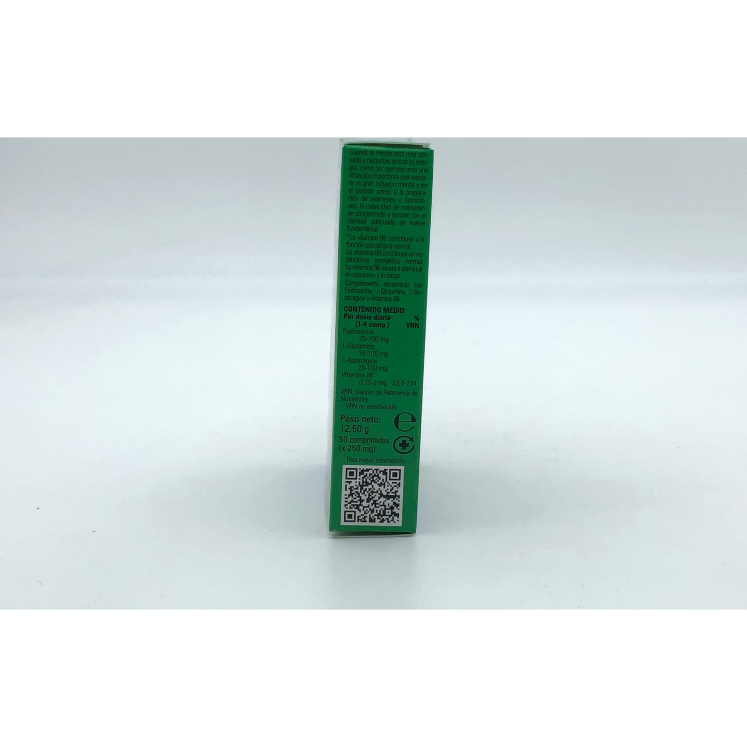 Complemento alimenticio diseñado para contribuir al mantenimiento adecuado de las funciones cognitivas. Formulado a base de fosfoserina y vitamina B6, que ayudan a reforzar la energía mental y a disminuir la sensación de fatiga o cansancio.