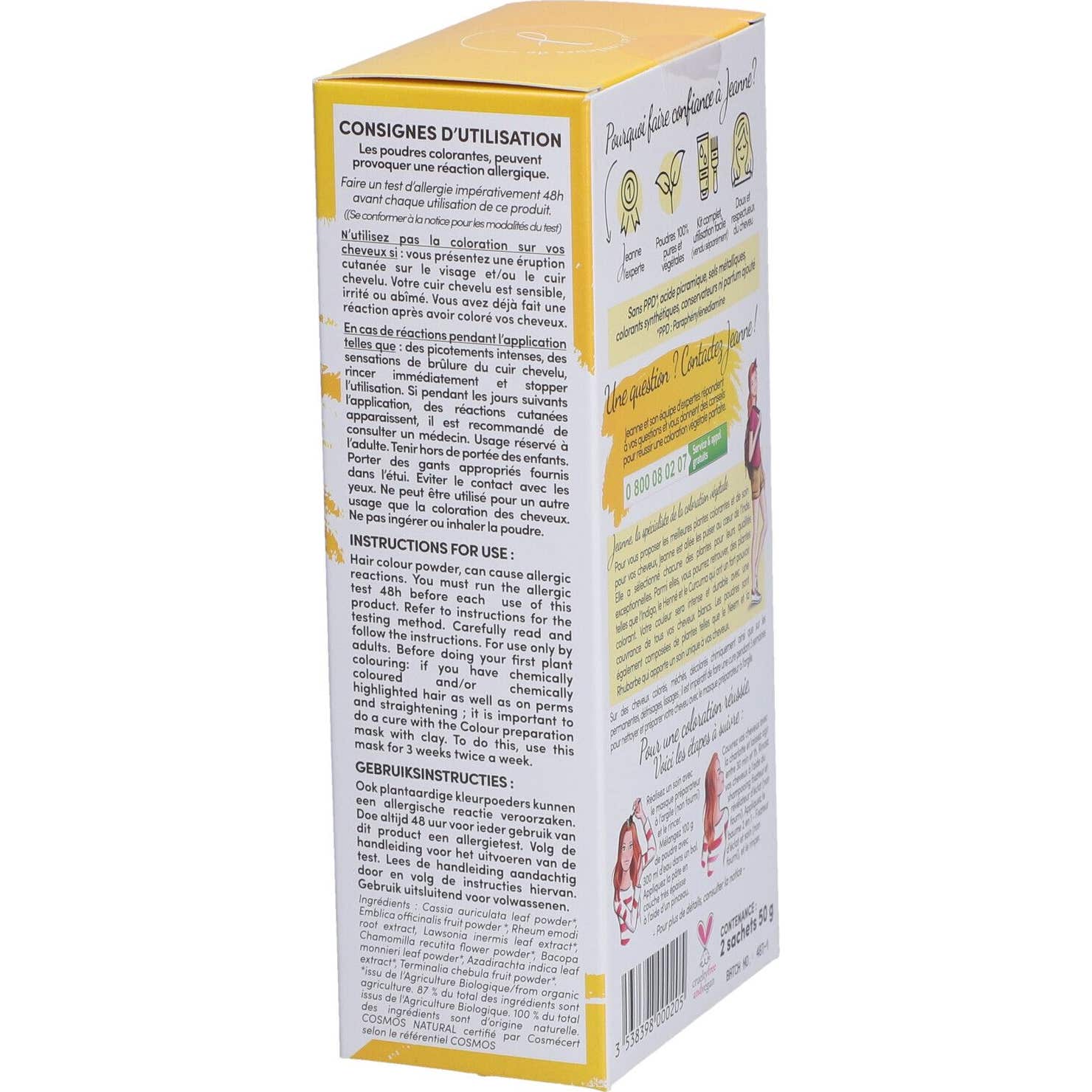 Facilitando así su aplicación en casa. Esta coloración está formulada sin aditivos químicos, lo que garantiza un uso seguro para el cabello. Su composición evita que se generen reflejos anaranjados, gracias a su estabilización. Contiene henna neutra, que aporta fuerza y brillo a la melena, y extracto de manzanilla, que ayuda a resaltar los reflejos rubios naturales.