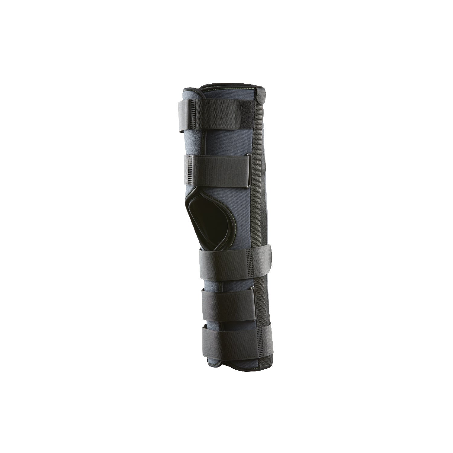 Férula de rodilla diseñada para ser usada en casos de traumatismo y esguince, luxación de la rótula, lesión parcial o rotura de ligamentos y para generar la inmovilización postoperatoria. Brinda un apoyo óptimo de la rodilla. Su diseño permite un ajuste fácil. tamaño indicado para adultos.