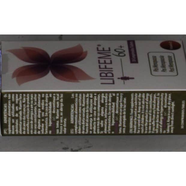Libifeme 60+ 30comp es un complemento alimenticio que contribuye al bienestar sexual de las mujeres posmenopáusicas.