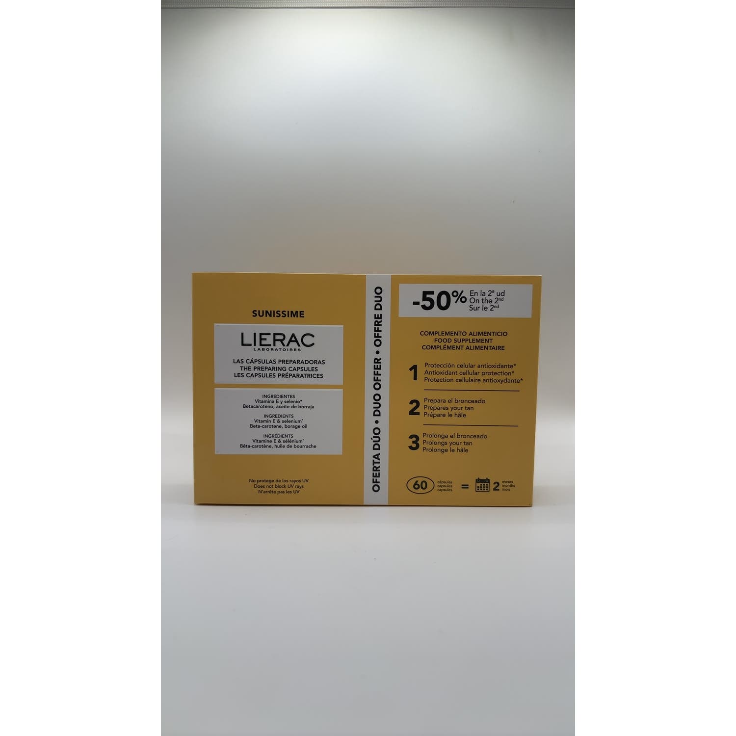 Lierac Sunissime Cápsulas Preparadoras para Bronceado 2x30caps es un complemento alimenticio que contribuye a lograr un bronceado más uniforme y duradero.