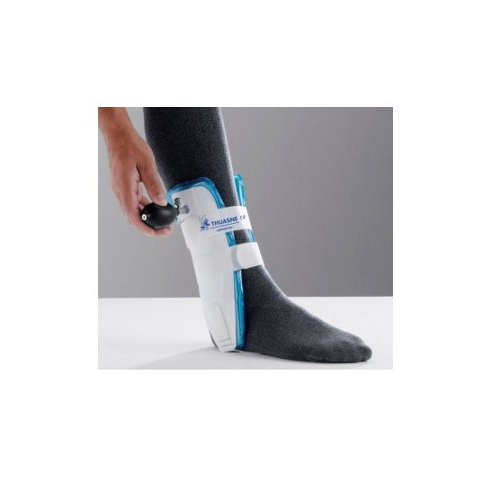 - 2 carcasas rígidas para una excelente inmovilización del tobillo - Aire para una buena distribución de la presión - Correas de auto-agarre para un ajuste preciso de la ortesis - Cierres pivotantes para dorsiflexión y plantarflexión.flexión y flexión plantar - Correa calcánea ajustable en anchura para una mejor adaptación al tobillo - Almohadillas interiores inflables a medida para una buena adaptación a la morfología - Válvula fácilmente accesible para inflar fácilmente las almohadillas con la tobillera colocada en el tobillo - Bomba que ocupa poco espacio - Colocación fácil de la tobillera gracias a un marcador impreso - Fácil mantenimiento: limpiar la tobillera con un paño húmedo INDICACIÓN
