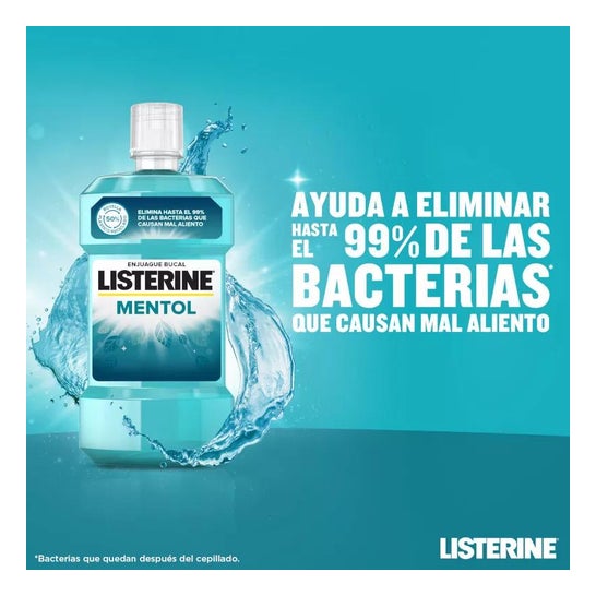 Listerine Mentol 250ml es un enjuague bucal que ayuda a proporcionar hasta 24 horas de protección contra la placa y un aliento fresco.