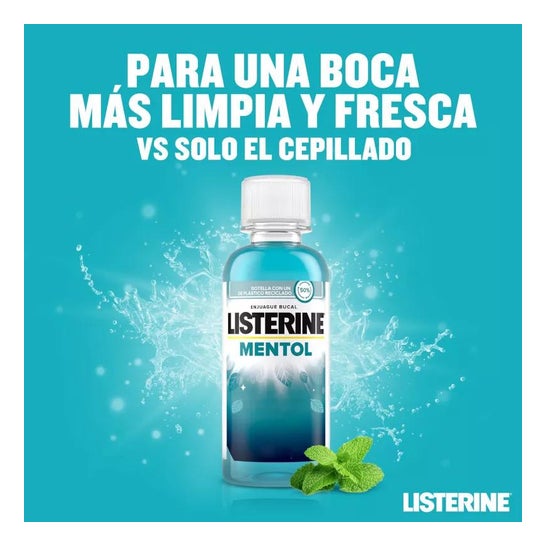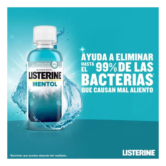 Listerine Mentol 95 ml es un enjuague bucal diseñado para prevenir la placa y proteger la salud bucal.Formulado con aceites esenciales y flúor, este enjuague bucal deja un aliento fresco duradero y también ayuda a eliminar las bacterias entre los dientes.Apto a partir de los 6 años.Sin alcohol.Tamaño de viaje.