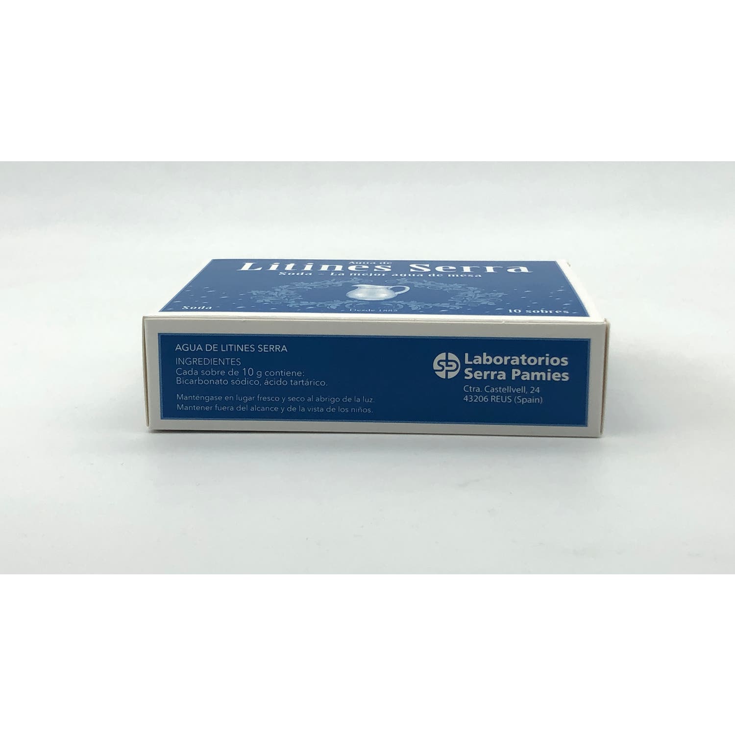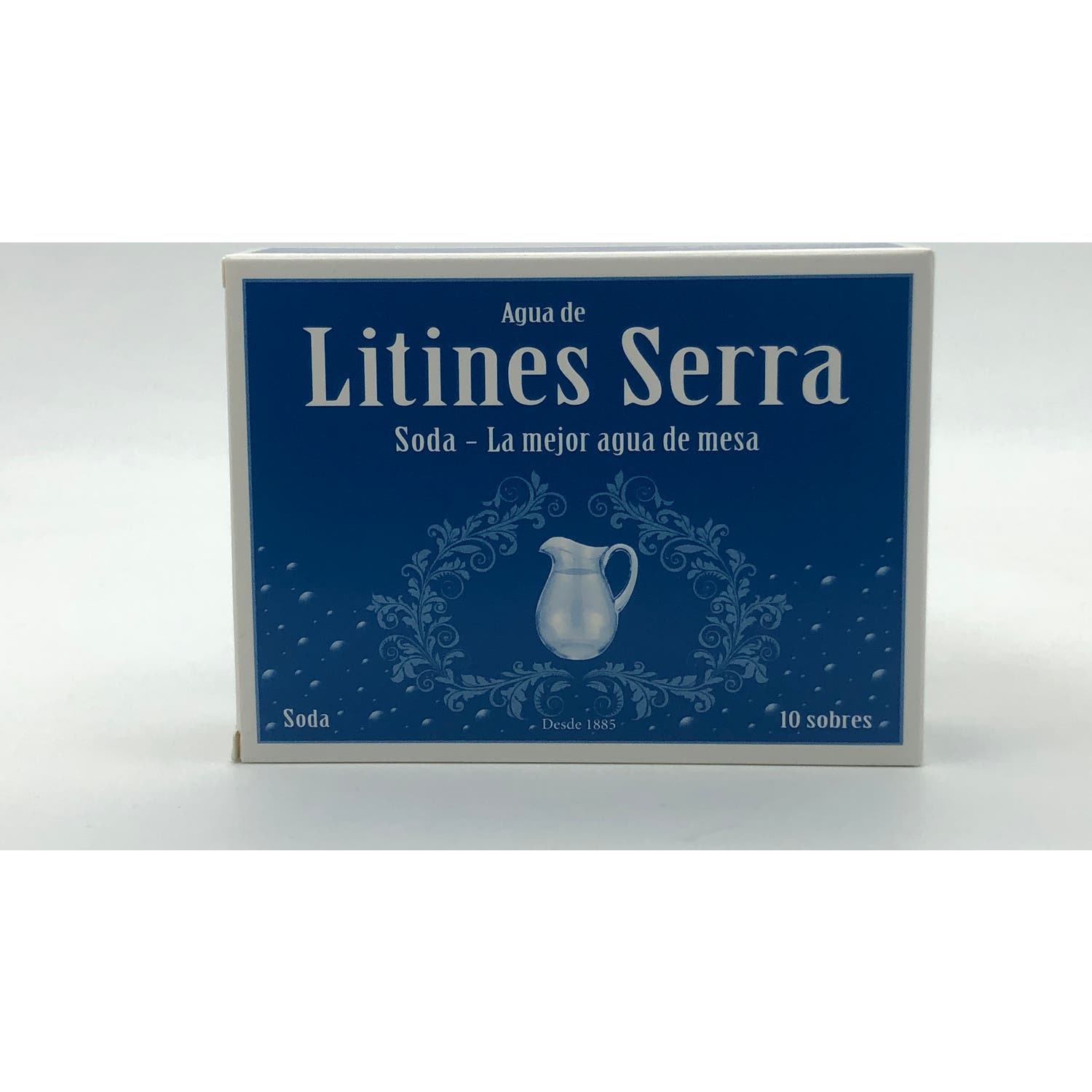 Litines Serra Agua De Mesa Gaseosa Y Digestiva 10 Sobres es una mezcla de bicarbonato sódico y ácido tartárico para añadir al agua y crear una bebida gaseosa y digestiva.