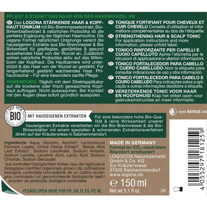 Logona Tónico Fortalecedor Cuero Cabelludo, en presentación de 150 ml, ofrece un cuidado adicional para el cabello, proporcionándole fortaleza y un aspecto saludable desde su raíz. Este producto ayuda a mantener la barrera protectora de la piel, favoreciendo un crecimiento más robusto del cabello desde la raíz hasta las puntas. Su formulación con un pH neutro asegura un tratamiento suave y delicado, apto para todo tipo de cabello.