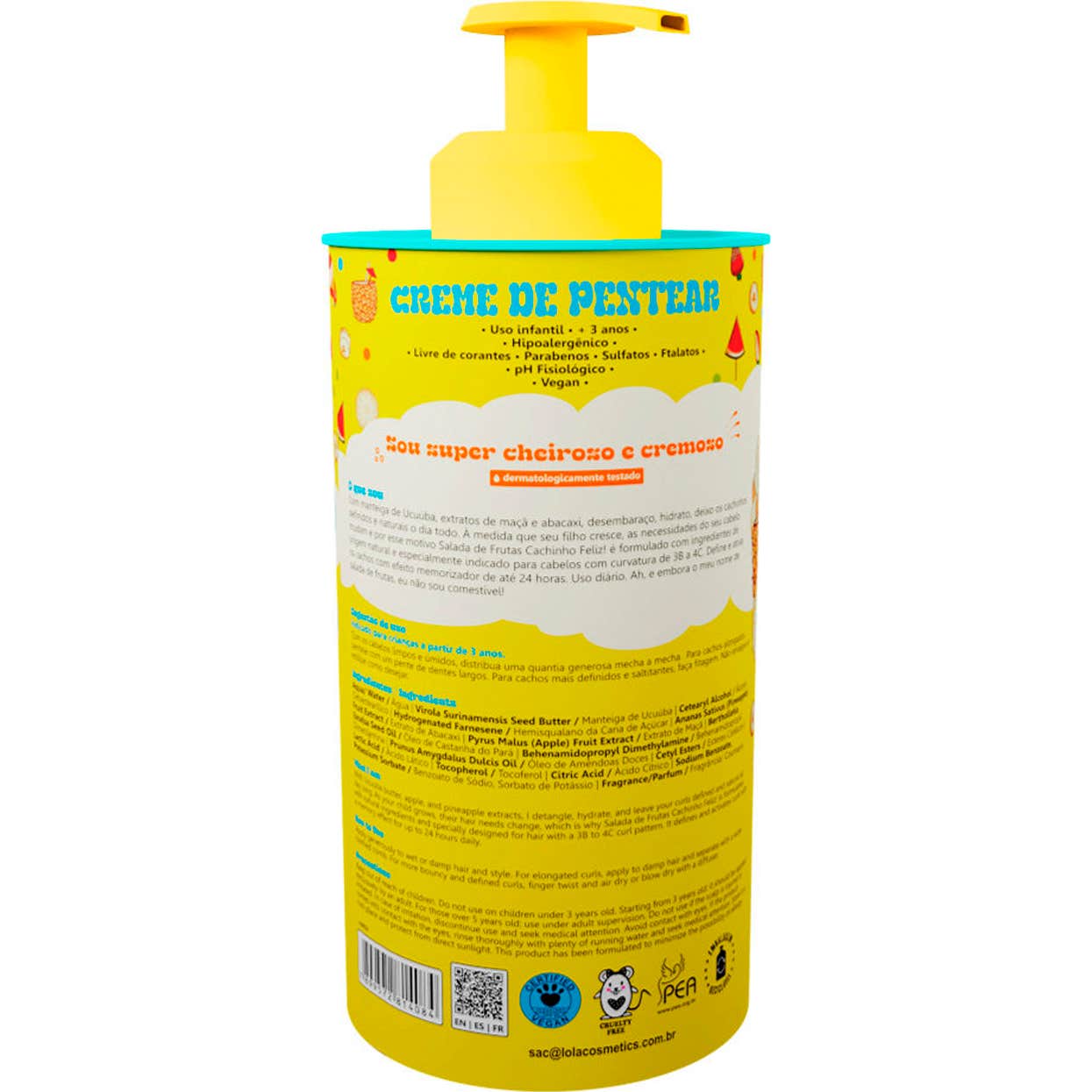 Lola Cosmetics Kids Cachinho Feliz Cocktail de Frutas 450g es una crema de peinado especialmente formulada para cabellos rizados y afro. Su objetivo principal es proporcionar hidratación, suavidad y definición a los rizos sin causar apelmazamiento.