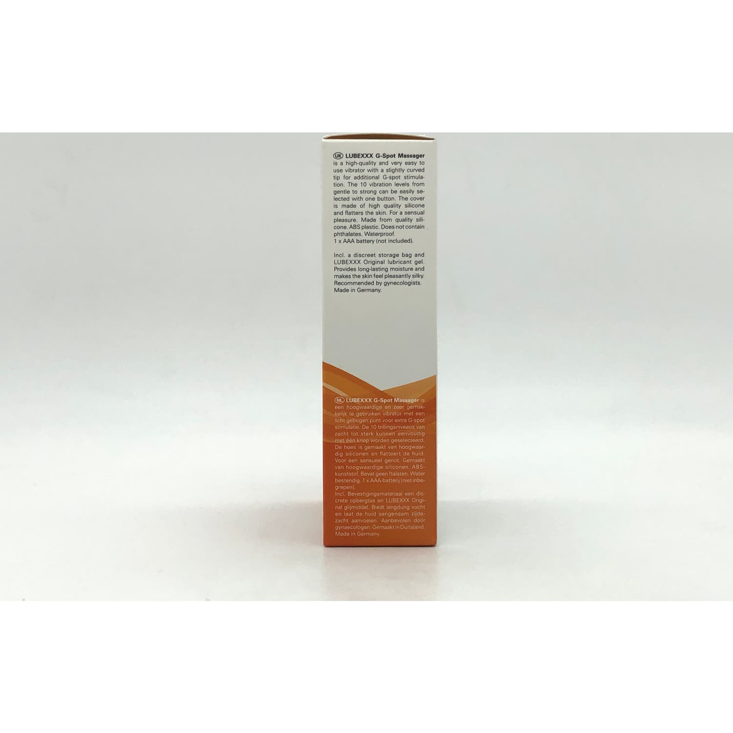 Incluye muestra de lubricante Original LUBEXXX. Las ventajas de su producto LUBEXXX G-Spot: Vibrador potente y silencioso. Con 10 excitantes niveles de vibración. Punta curva para la estimulación del punto G. Muy fácil de usar. Muy cómodo de llevar.