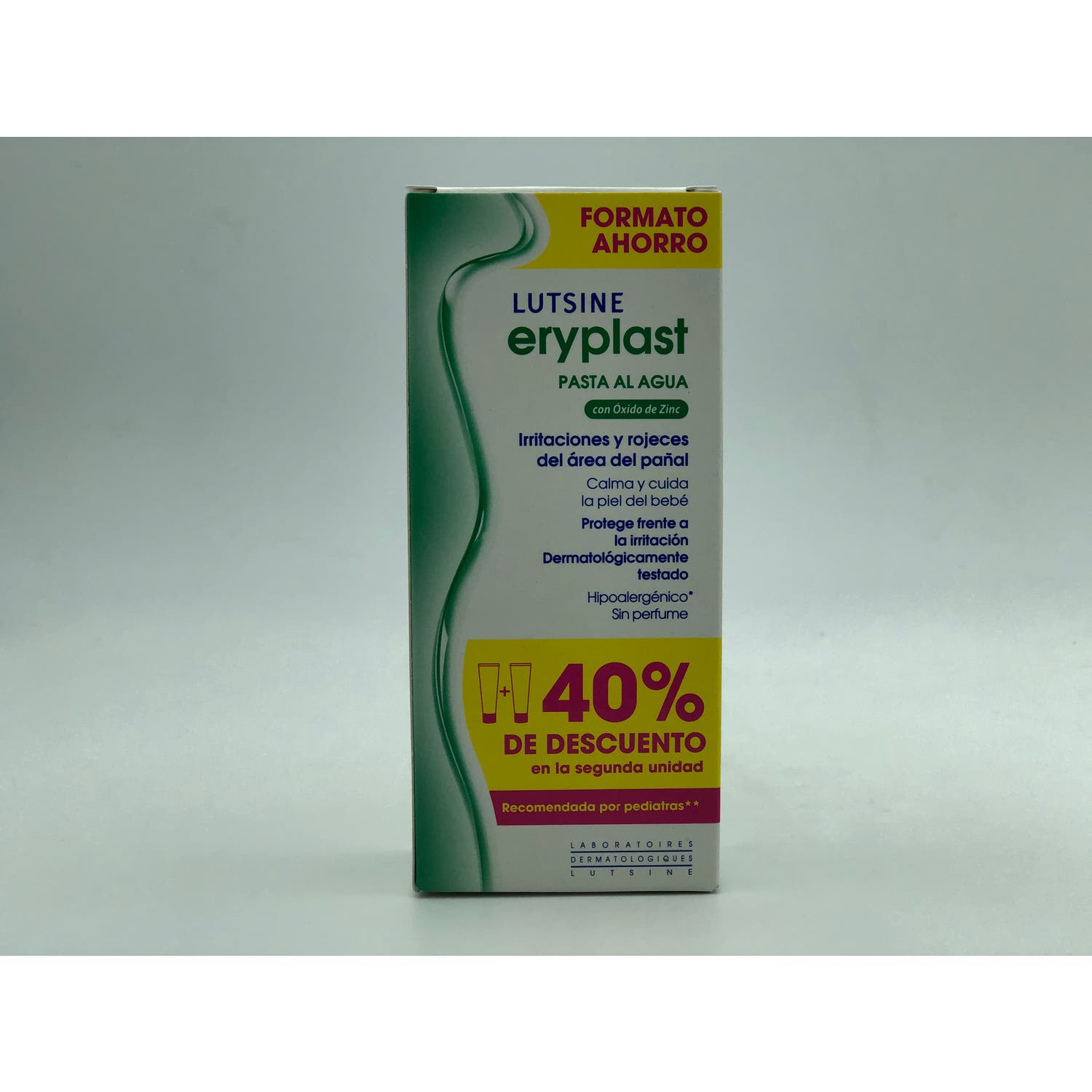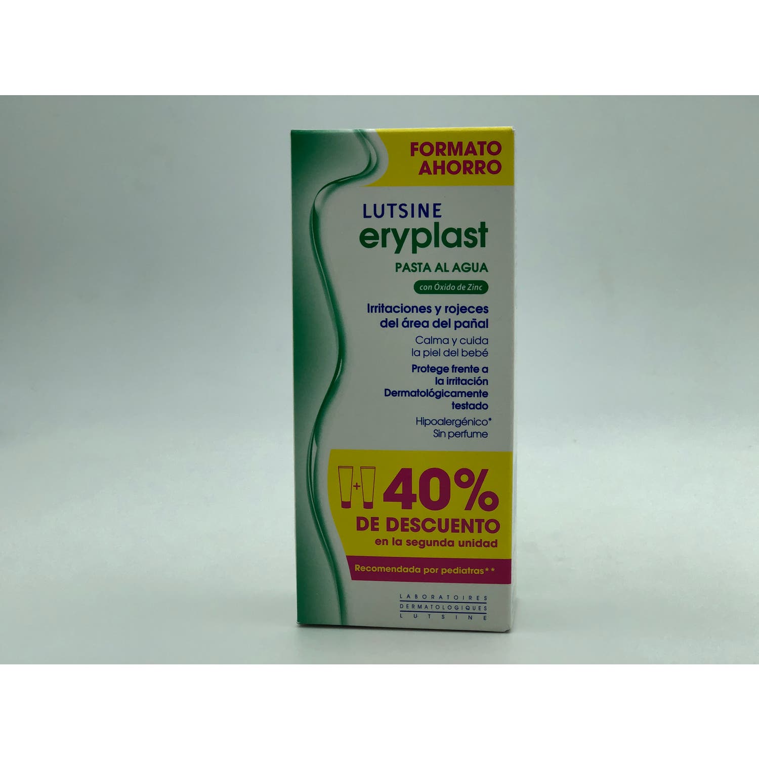Dúo de Lutsine eryplast, crema hidratante para la prevención y tratamiento de la dermatitis del pañal en niños y adultos. Formulada con una excelente tolerancia y una buena aceptación por parte de los usuarios.