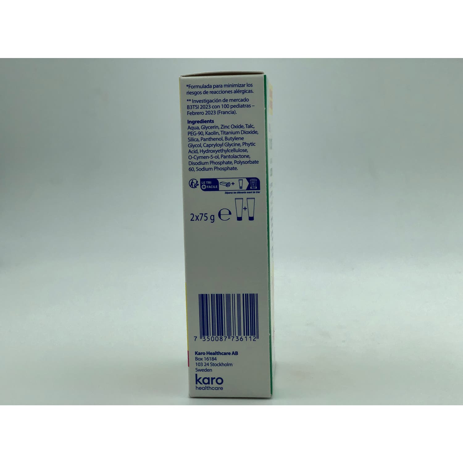 Glicerina, Ácido fítico, Acetato de oleilo, Óxido de zinc y D-pantonal.