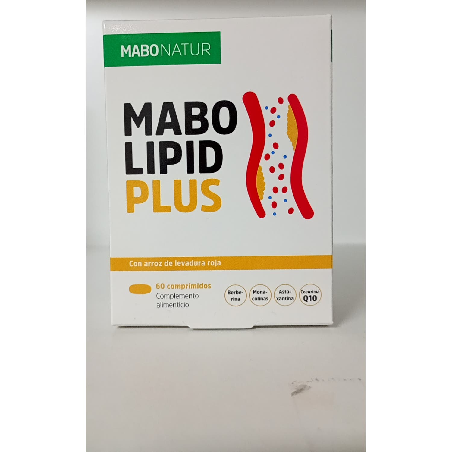 Mabo Lipid Plus 60caps es un complemento alimenticio que ayuda a controlar los niveles de colesterol en sangre, formato vegetal.