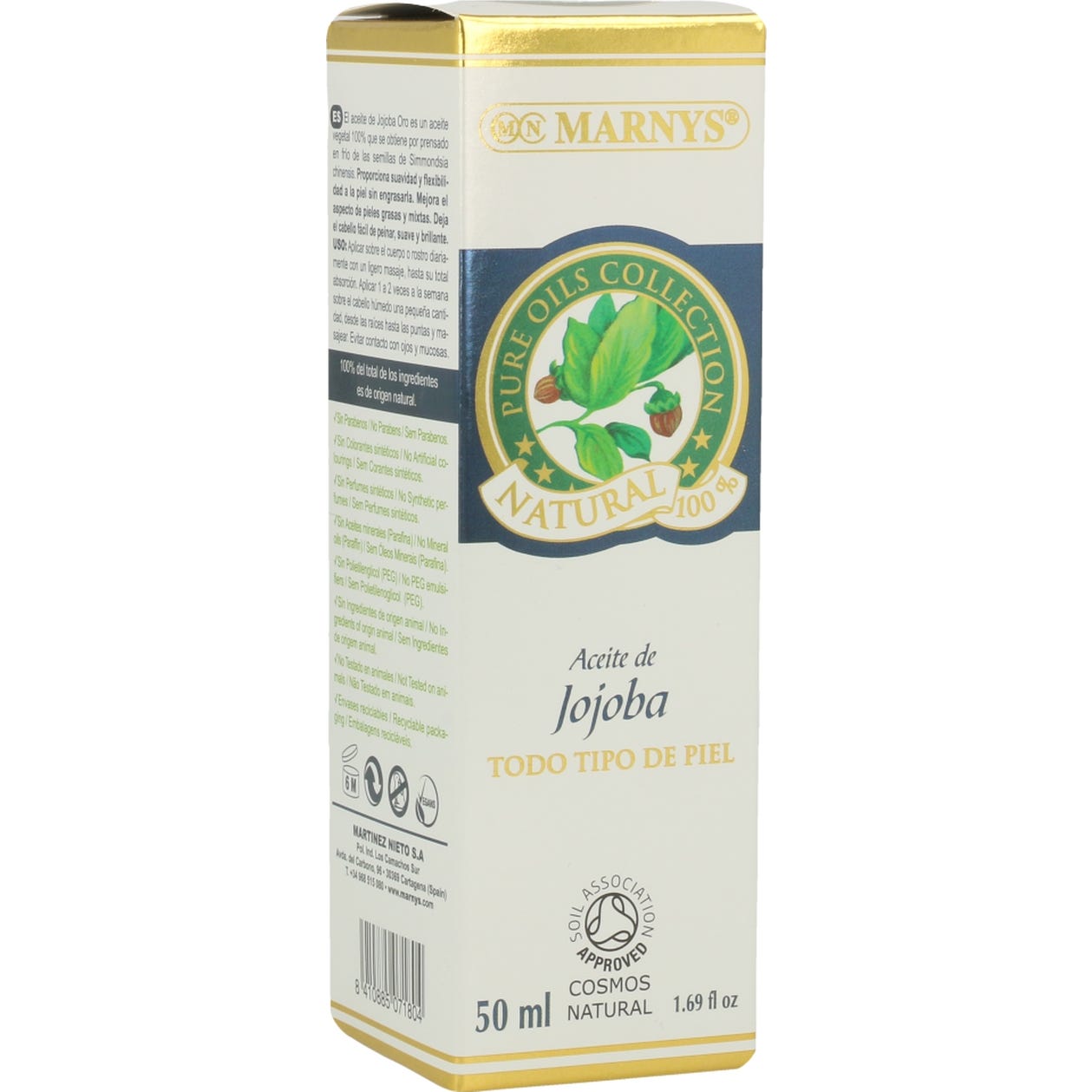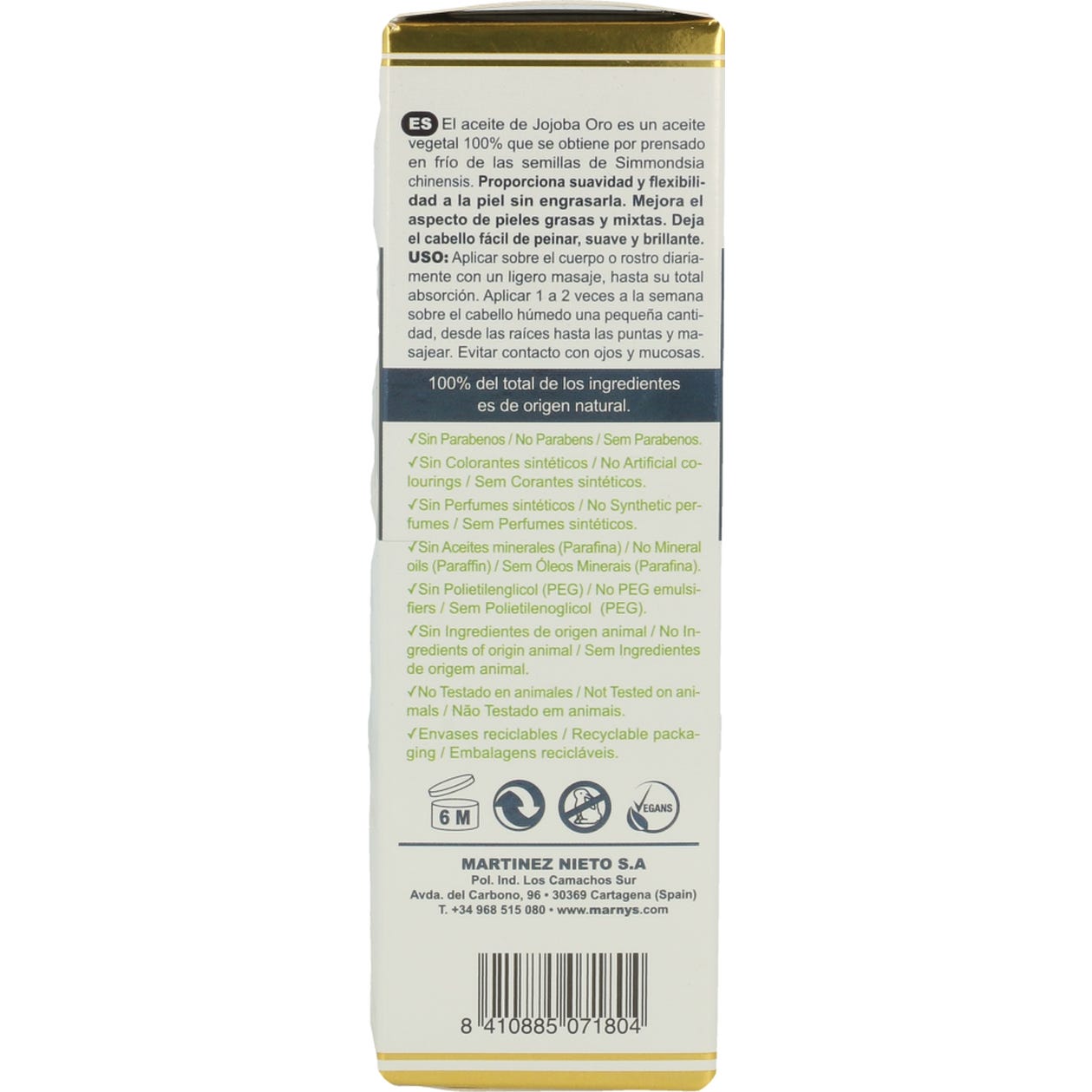 Aceite de jojoba reparador, que restaura el equilibrio graso de piel y cabello, dejando éste último fácil de peinar, suave y brillante.