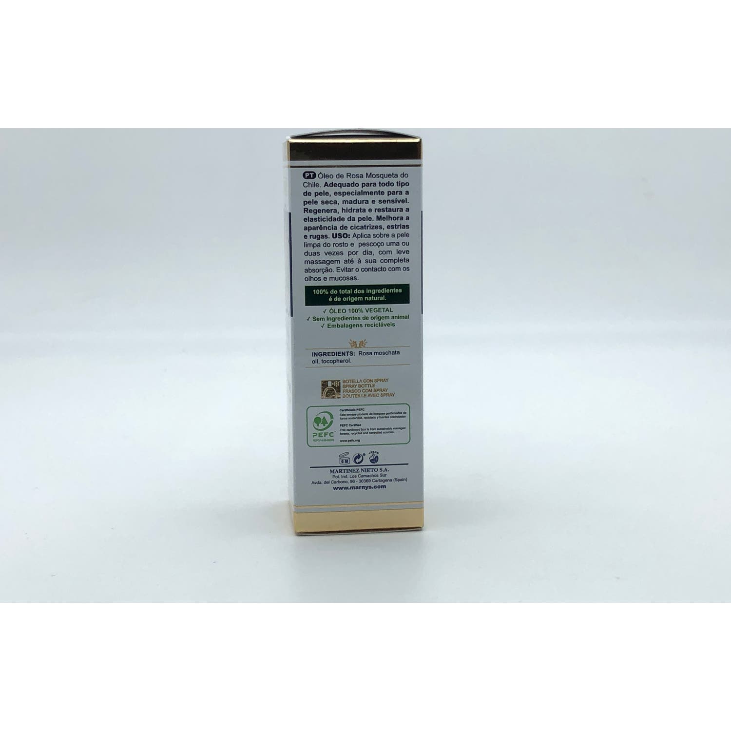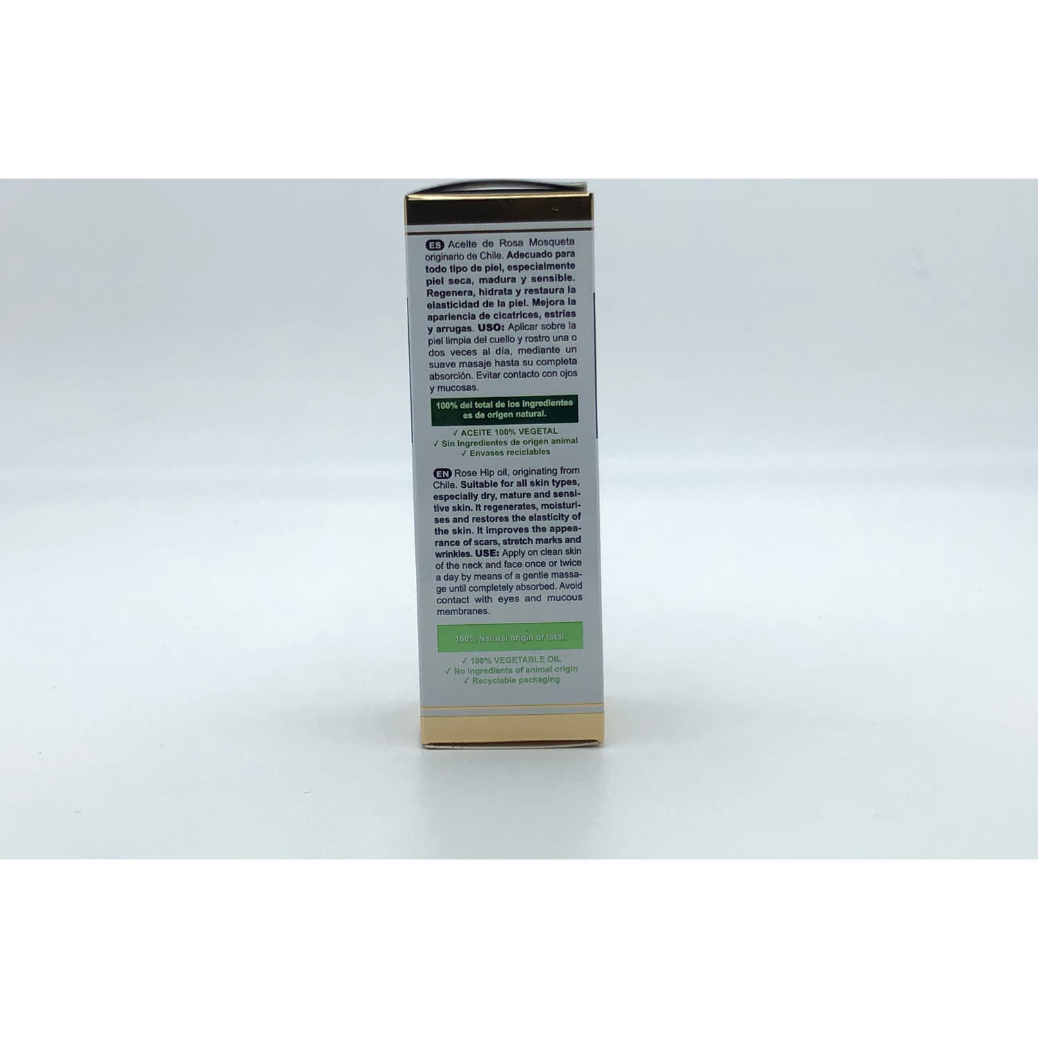 Aceite de rosa mosqueta, aporta elasticidad y revitaliza la piel. Hidrata y contribuye a la cicatrización, ayudando también a reducir manchas y rojeces. Es un aceite que se absorbe rápida y fácilmente a través de la piel sin dejar residuo graso.