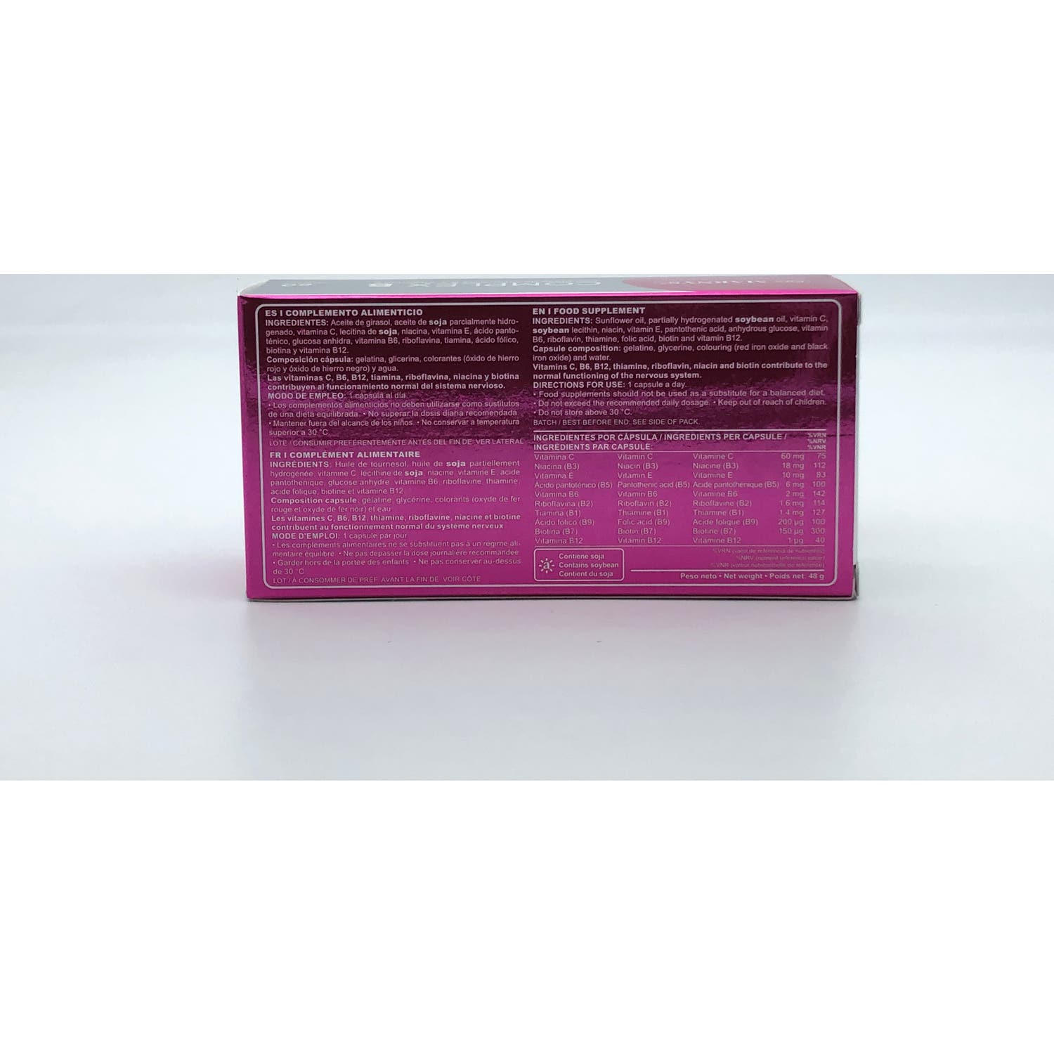 Aceite de girasol, glucosa anhidra, aceite de soja parcialmente hidrogenado, vitamina C, lecitina de soja, nicotinamida, vitamina E, pantotenato cálcico, vitamina B6, riboflavina, tiamina, ácido fólico, biotina, vitamina B12.