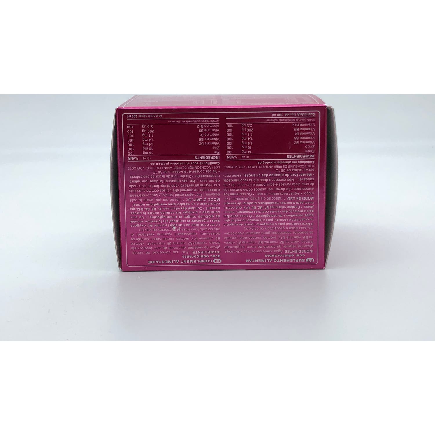 Suplemento nutricional diseñado para mejorar la absorción de hierro en el cuerpo y prevenir los estados de anemia, cansancio y fatiga. Contiene un agradable sabor a cereza. Enriquecido con zinc, bisglicinato ferroso, vitamina B2, B6, B1, B9 y B12. Las vitaminas del grupo B ayudan al normal funcionamiento del sistema inmunitario y a disminuir el cansancio y fatiga. Favorece la función psicológica normal y participa en la formación de glóbulos rojos y del sistema nervioso.