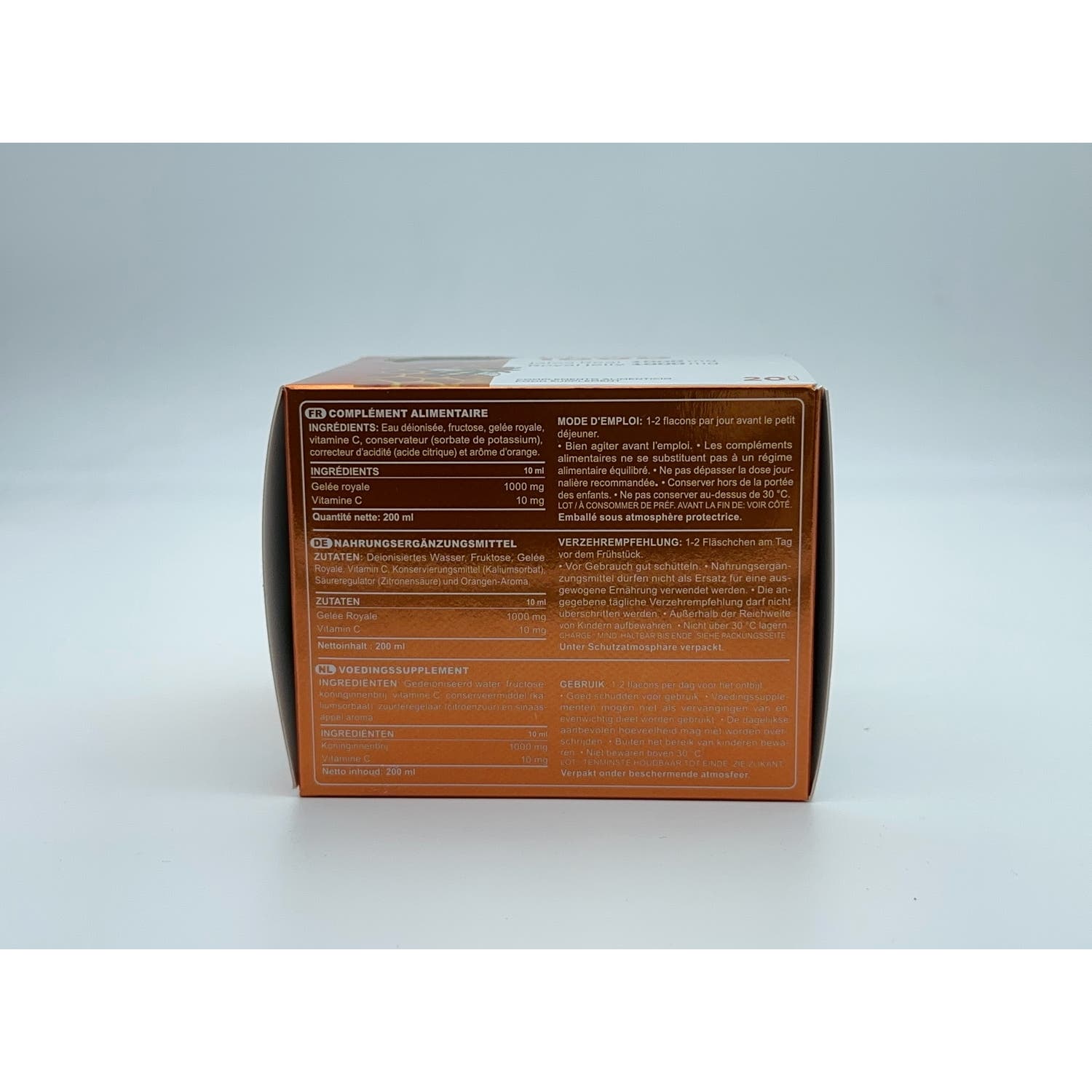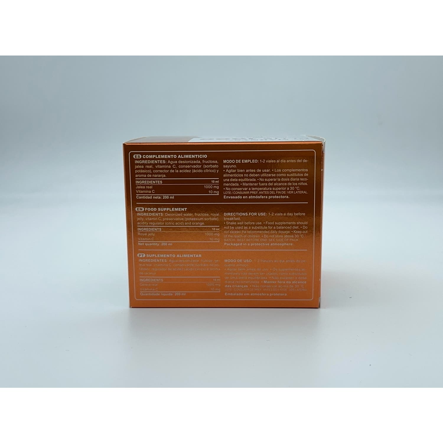 Complemento alimenticio que contiene jalea real pura y vitamina C, indicado principalmente para hacer frente a los cambios estacionales. Favorece el funcionamiento del cuerpo y del metabolismo energético para poder realizar sus actividades diarias.