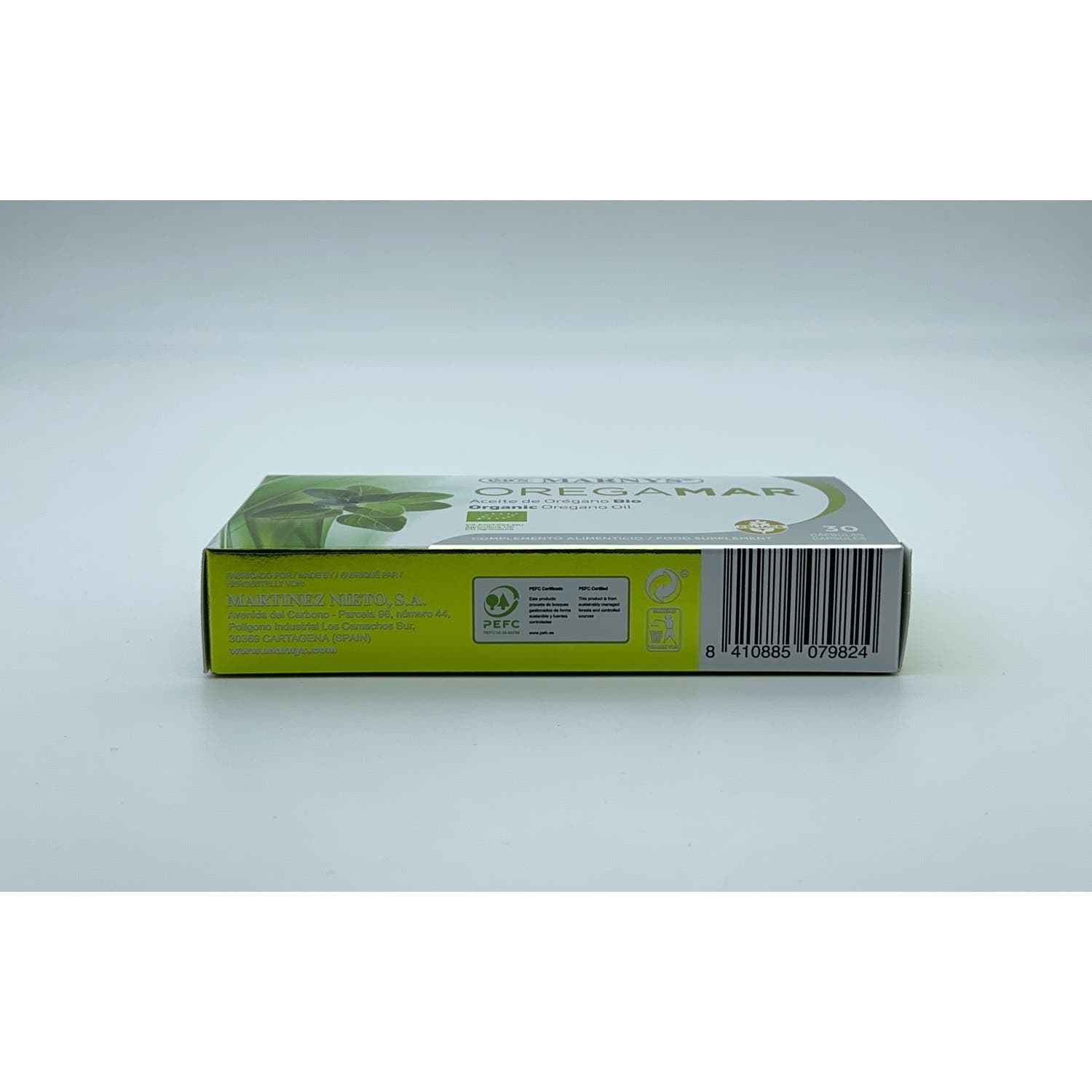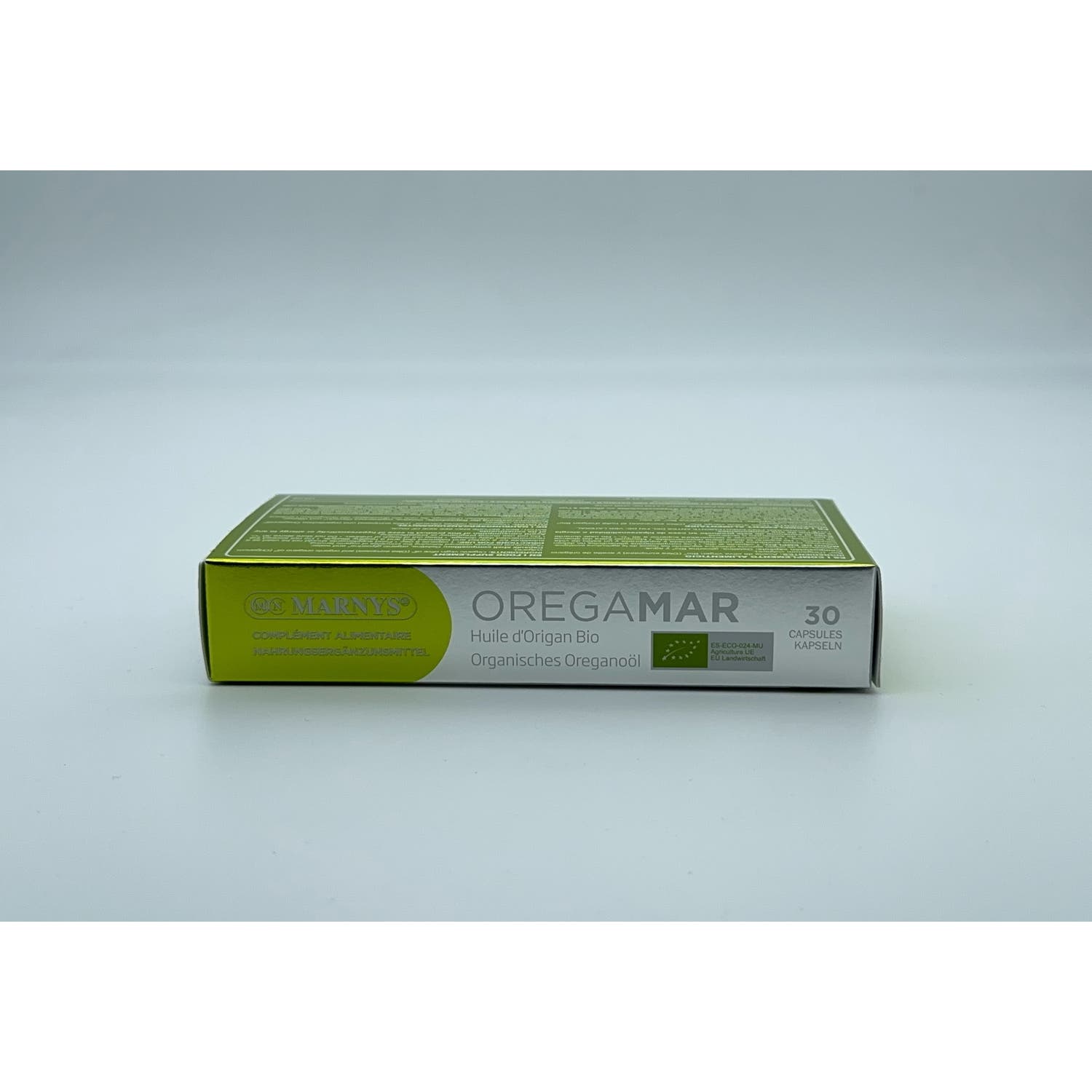 Marnys Oregamar 30caps es aceite puro de orégano BIO. Tiene alto contenido en carvacrol, que contribuye a la funcionalidad de los procesos digestivos. Este complemento alimenticio contiene un mínimo de 60% de carvacrol, así como aceite de oliva, que aporta ácidos grasos monoinsaturados Omega 9 (ácido oleico), para un mejor bienestar corporal.