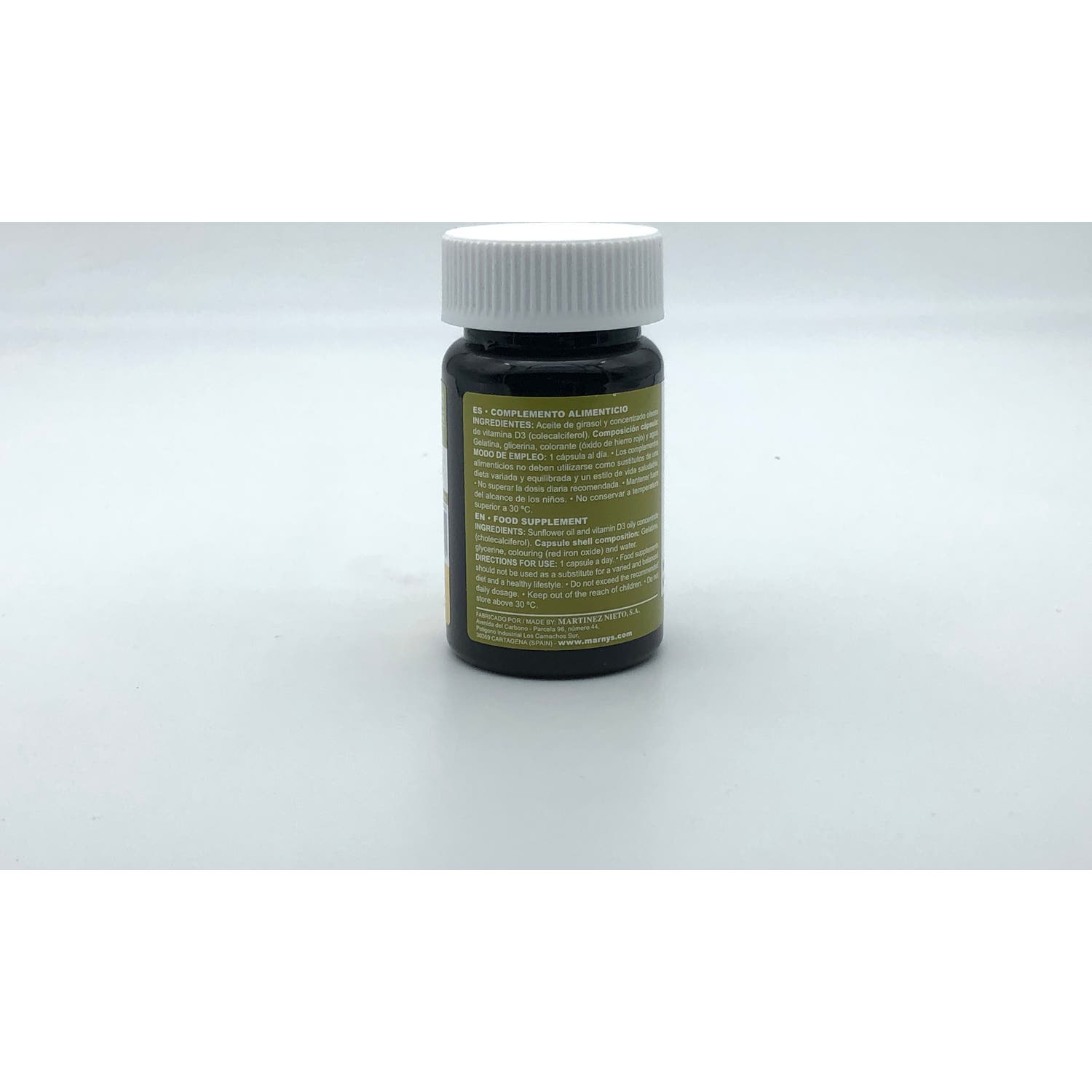 Complemento alimenticio con base de aceite de oliva y un contenido de 4000 UI de vitamina D en su forma D3 (colecalciferol). Presentación de 120 cápsulas.