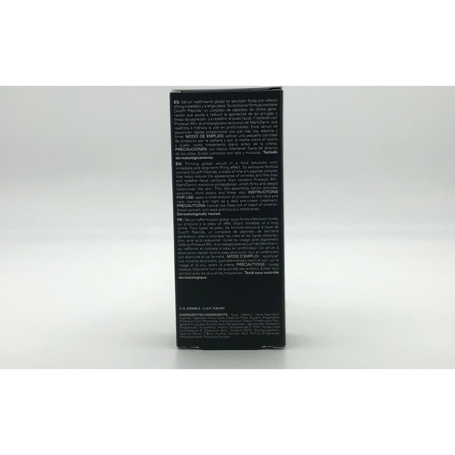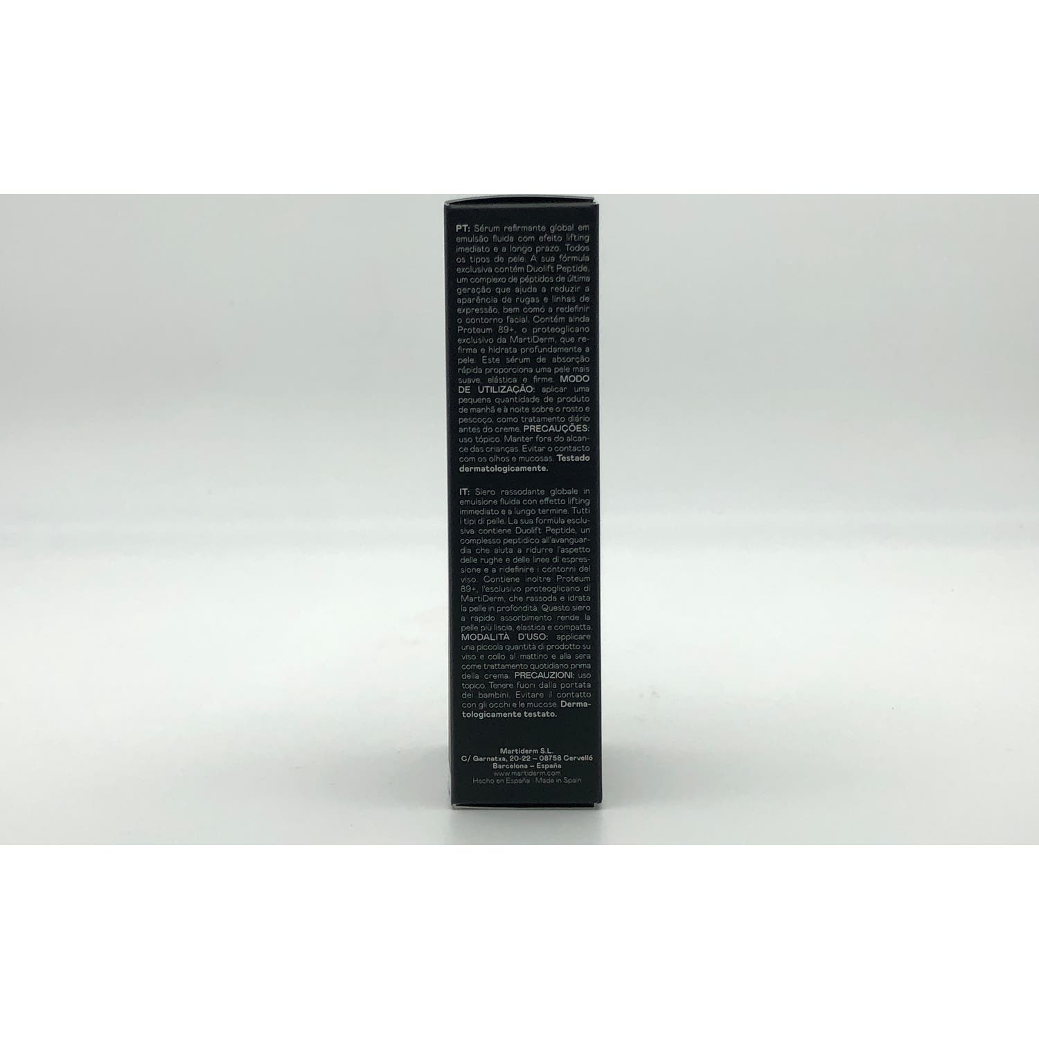 Sérum reafirmante global en emulsión fluida con efecto lifting inmediato y a largo plazo. Su exclusiva fórmula contiene Duolift Peptide, un complejo de péptidos de última generación que ayuda a reducir la apariencia de las arrugas y líneas de expresión, y a redefinir el óvalo facial. Y también con Proteum 89+, el proteoglicano exclusivo de MartiDerm, que reafirma e hidrata la piel en profundidad. Este sérum de absorción rápida proporciona una piel más lisa, elástica y firme.