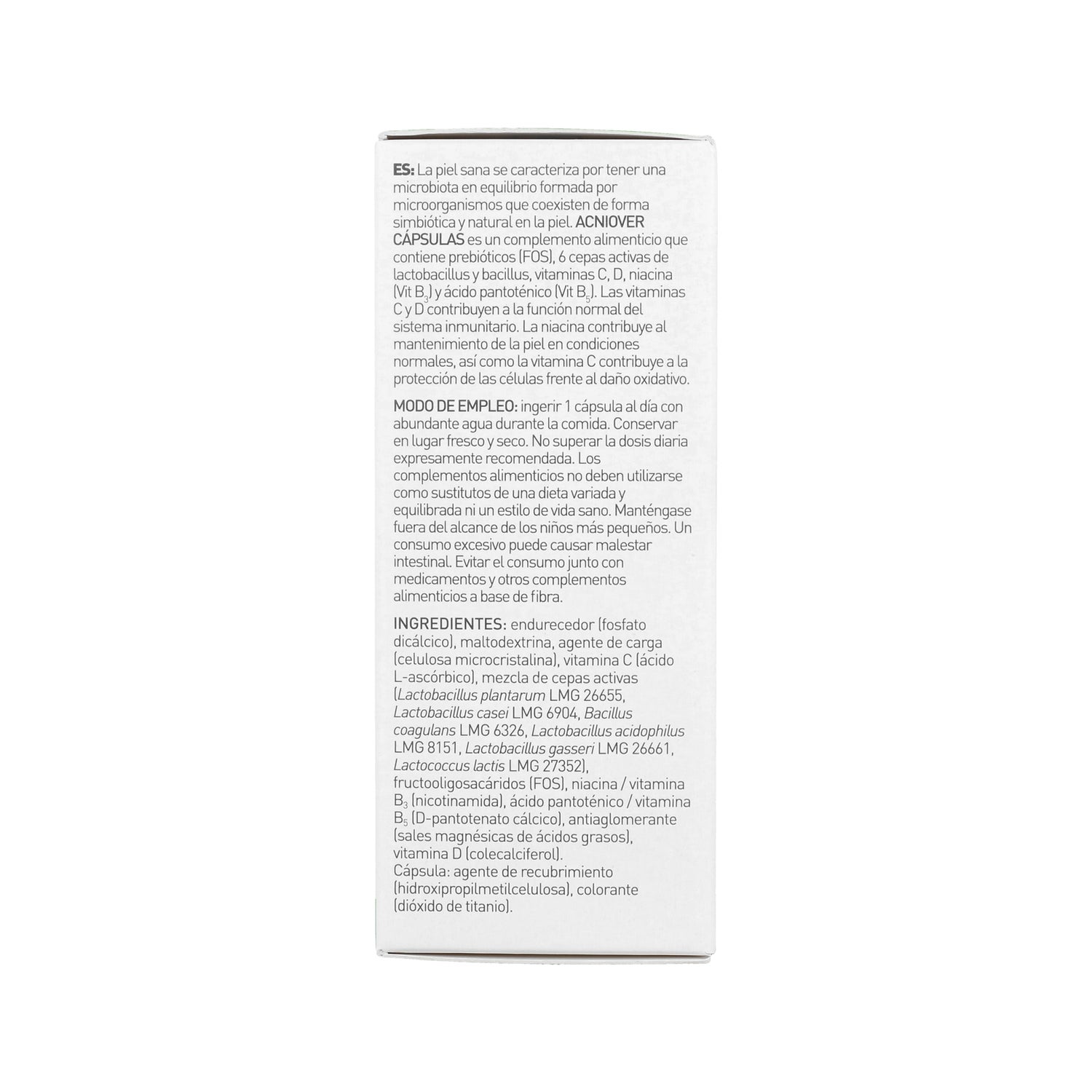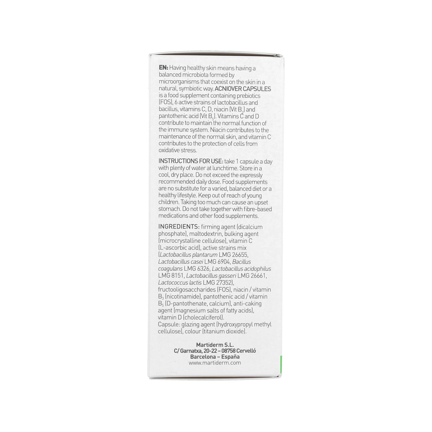 Martiderm Acniover 60caps es un complemento alimenticio que contribuye a equilibrar la microbiota de la piel y su barrera natural. Además, actúa como seborregulador, favoreciendo la eliminación de espinillas y disminuyendo la apariencia de los poros.
