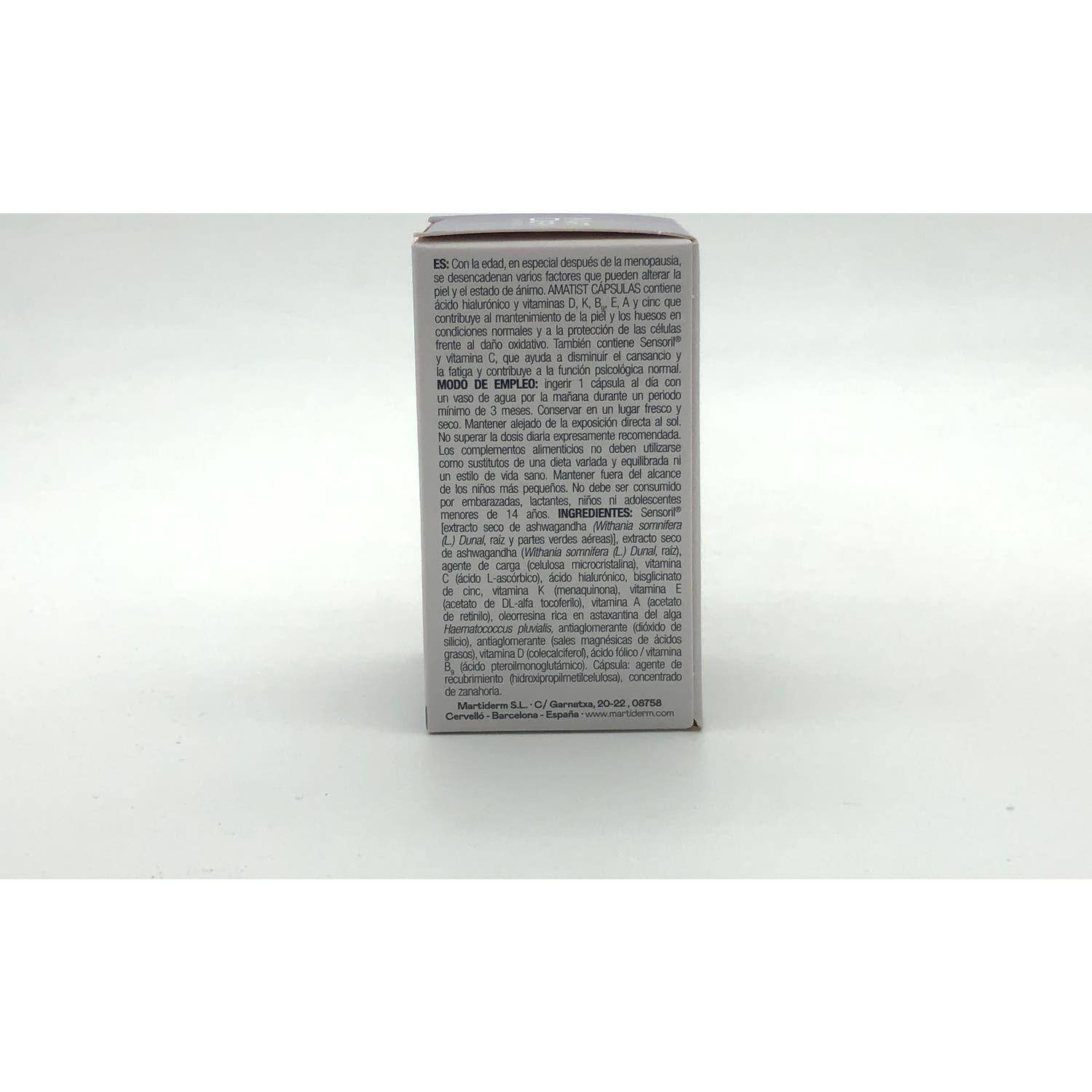 Martiderm Amatist 60caps es un complemento alimenticio formulado para ayudar a mejorar el aspecto de la piel.