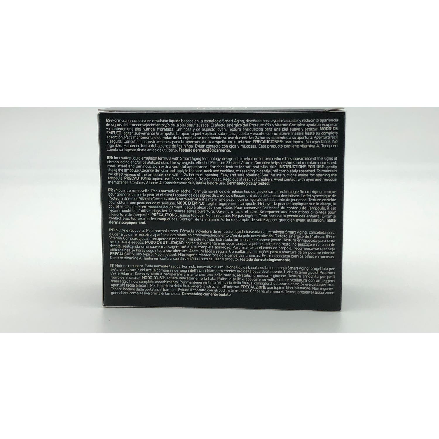 Su formulación incluye proteoglicanos y un complejo vitamínico (con C, B5, F, E y A) que contribuyen a proteger la piel contra el envejecimiento prematuro.