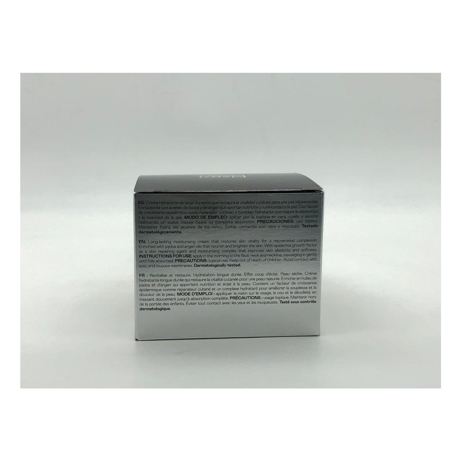 Su fórmula contiene Factores de Crecimiento Epidérmico (EGF), que ayudan a estimular el crecimiento de las células epiteliales para favorecer la reparación del tejido. De esta forma, contribuye a que las células retengan mejor el agua de forma natural. Además, cuenta con aceite de argán y aceite de jojoba para aportar nutrición y luminosidad a la piel.