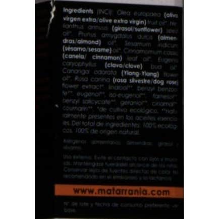 Matarrania Aceite Corporal Canela Clavo Ylan Ylang Bio 100ml es un aceite corporal para aplicar después de la ducha.