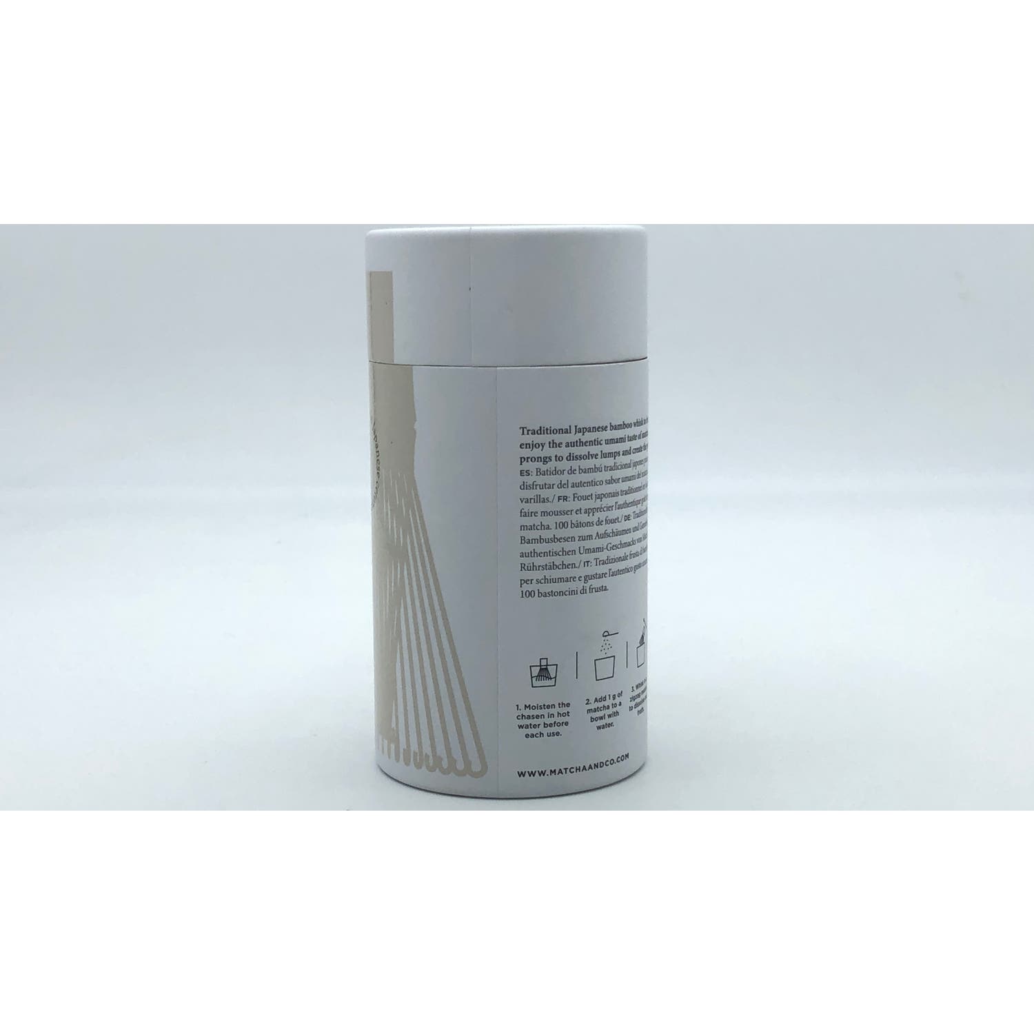 Está fabricado con 100 varillas de bambú, delicadas y flexibles, que permiten disolver completamente el polvo de matcha, además de batirlo y crear una agradable espuma que potencia su sabor.