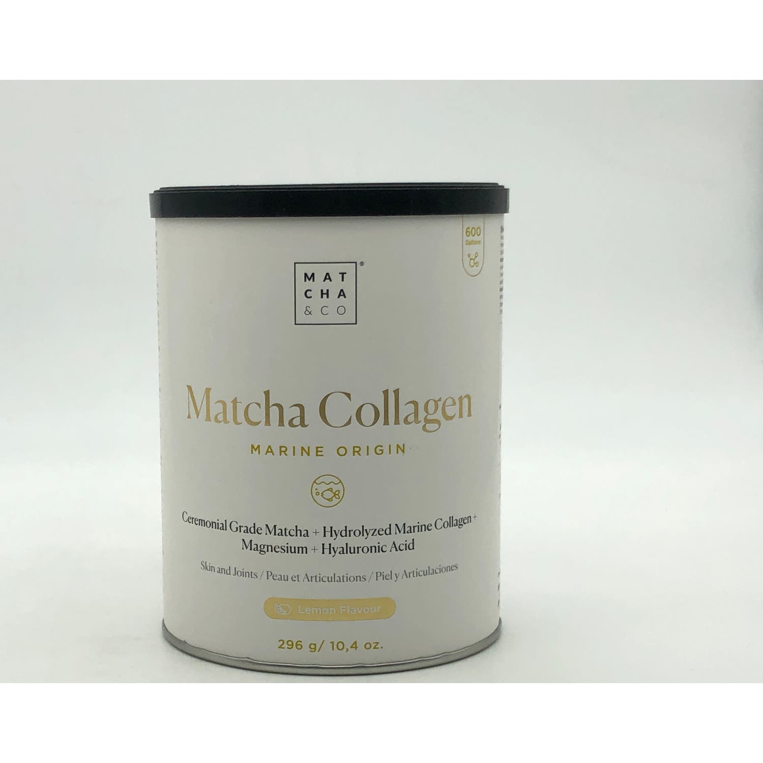 Matcha & Co Matcha Collagen Colágeno Marino Sabor Limón 290g es un complemento alimenticio a base de té matcha de grado ceremonial con colágeno marino hidrolizado, magnesio y ácido hialurónico.