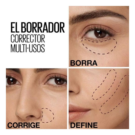 Maybelline Corrector de Ojeras El Borrador 01 Light es un corrector de ojeras, bolsas e imperfecciones de la reconocida marca Maybelline. Proporciona una cobertura completa que deja un tono uniforme en la piel, siendo especialmente hidratante y evitando el efecto cuarteado. Este producto está diseñado para pieles claras y cuenta con un aplicador con esponja que facilita su aplicación de manera precisa.