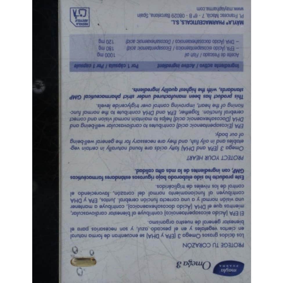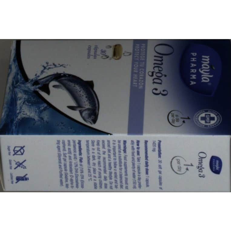 Mayla Omega-3 es un complemento alimenticio a base de aceite de pescado, rico en EPA y DHA. Ayuda a contrarrestar el efecto de las grasas trans, que favorecen la producción del colesterol.