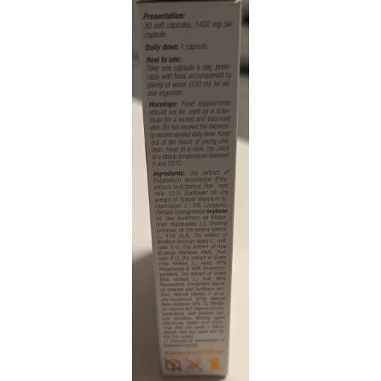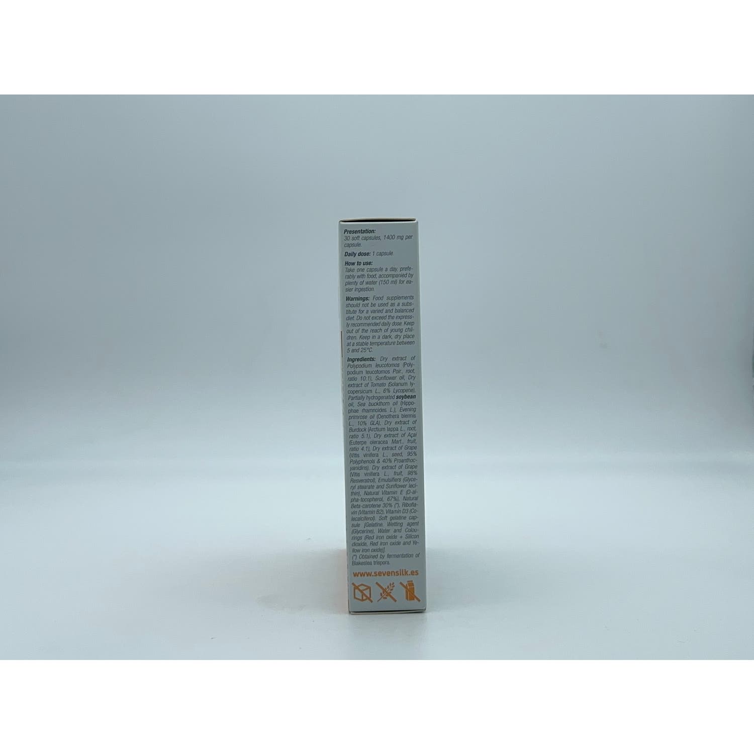 Este nutricosmético a base de un complejo único que se conforma de extracto de Polypodium Leucotomos, Fruto de Açaí y Betacarotenos ayudan reforzar la piel, contribuyendo a bloquear el daño de los radicales libres producidos por los rayos UV.