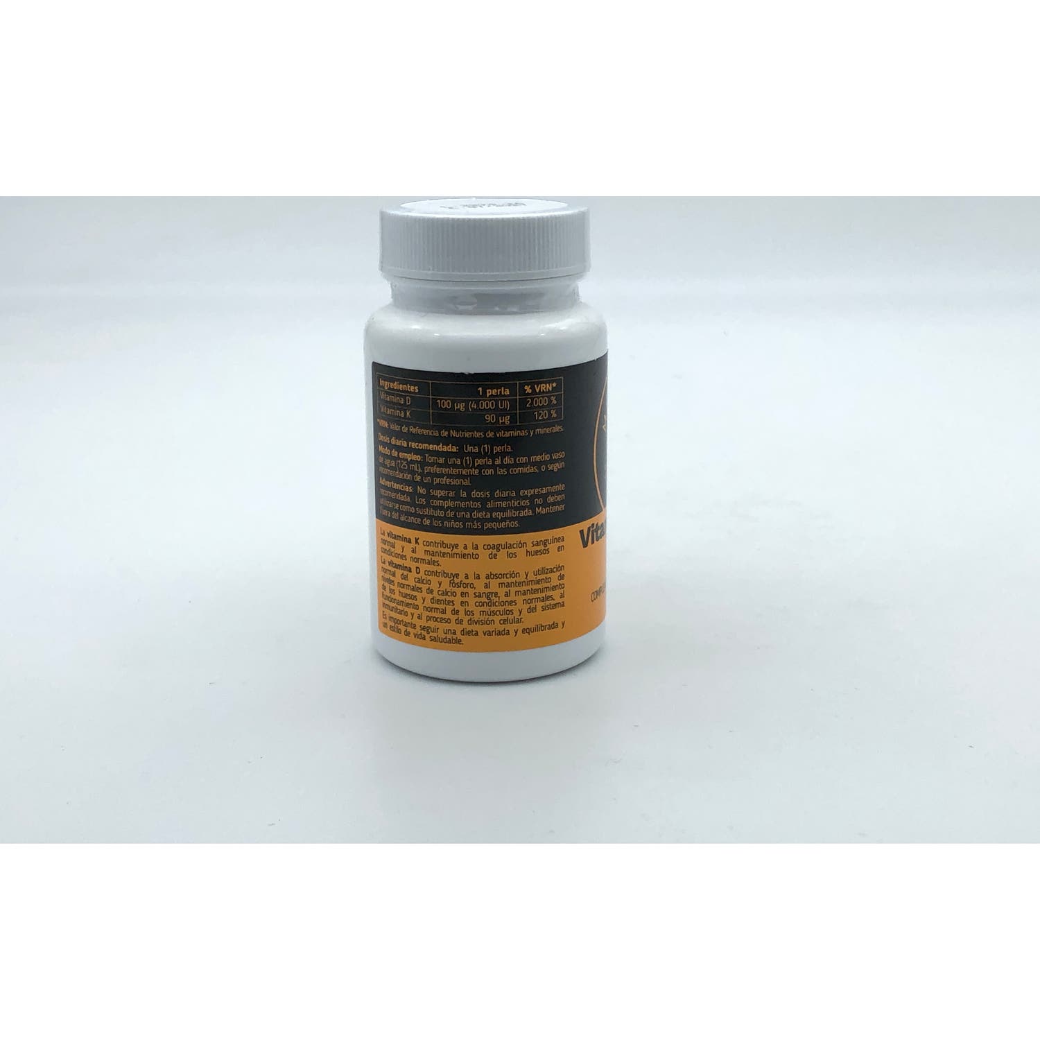 Complemento alimenticio en formato de perlas con Vitamina D3 más K2. Formulado para el refuerzo y el buen funcionamiento de: