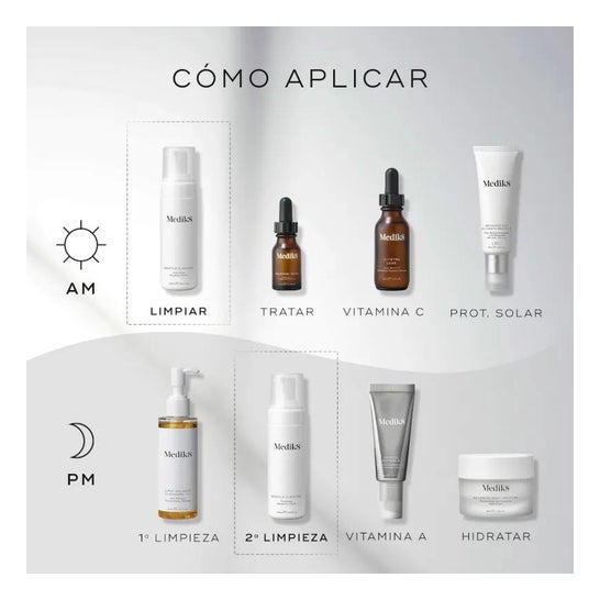 Retire la espuma suavemente con salpicaduras de agua y seque la cara con palmaditas.