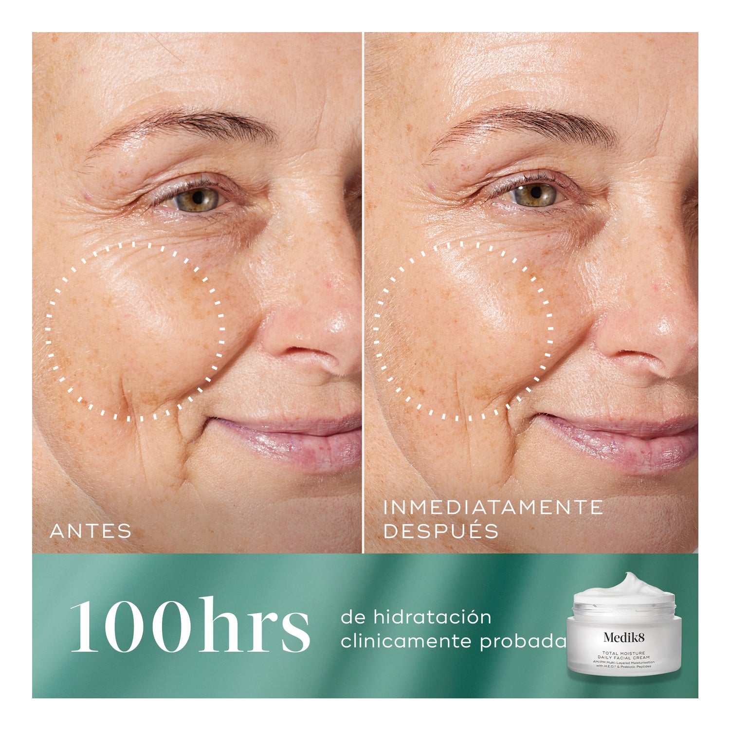 Total Moisture Daily Facial Cream: Después de la limpieza matutina aplica uniformemente sobre el rostro, el cuello y el escote con movimientos ascendentes. Después de la aplicación matutina, aplique protector solar.