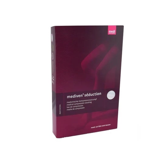 Mediven Seduction 20 Media Pie Cerrado Negro Talla 2C 1 Par ofrece compresión médica efectiva con un diseño elegante, ideal para el tratamiento de trastornos venosos. Recomendada para mejorar la circulación en las piernas, aliviar molestias de insuficiencia venosa y prevenir varices, esta media combina estética y funcionalidad. Está dirigida a adultos que buscan una compresión moderada con comodidad y diseño. Gracias a su compresión graduada, ejerce presión óptima en el tobillo que disminuye hacia el muslo, facilitando el retorno venoso y reduciendo la sensación de pesadez y cansancio. Sus principales características incluyen un tejido transpirable, costuras planas que evitan marcas y talón reforzado para mayor durabilidad. Su diseño a medida y el acabado en pie cerrado proporcionan confort durante todo el día, manteniendo las piernas ligeras y saludables, incluso tras largas horas de estar de pie o sentado.