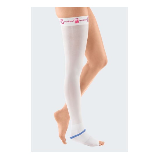 Mediven Struva 35 H932 Ag Media Blanco Talla 4 1 Par es una solución eficaz para la compresión clínica tras cirugía venosa y la prevención de trombosis. Diseñada para ofrecer comodidad y eficacia en el cuidado postoperatorio, esta media proporciona una compresión de 35 mmHg, ideal para la prevención y tratamiento de: