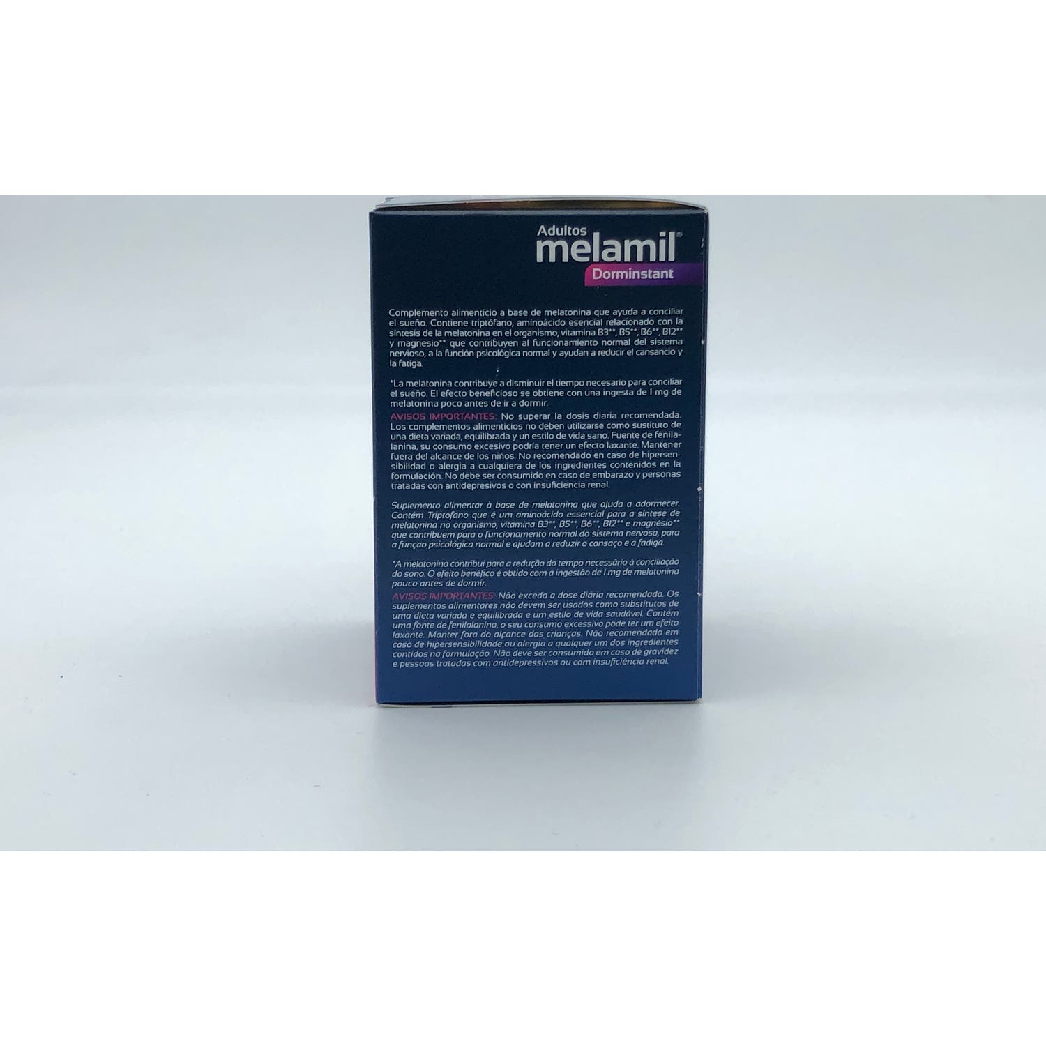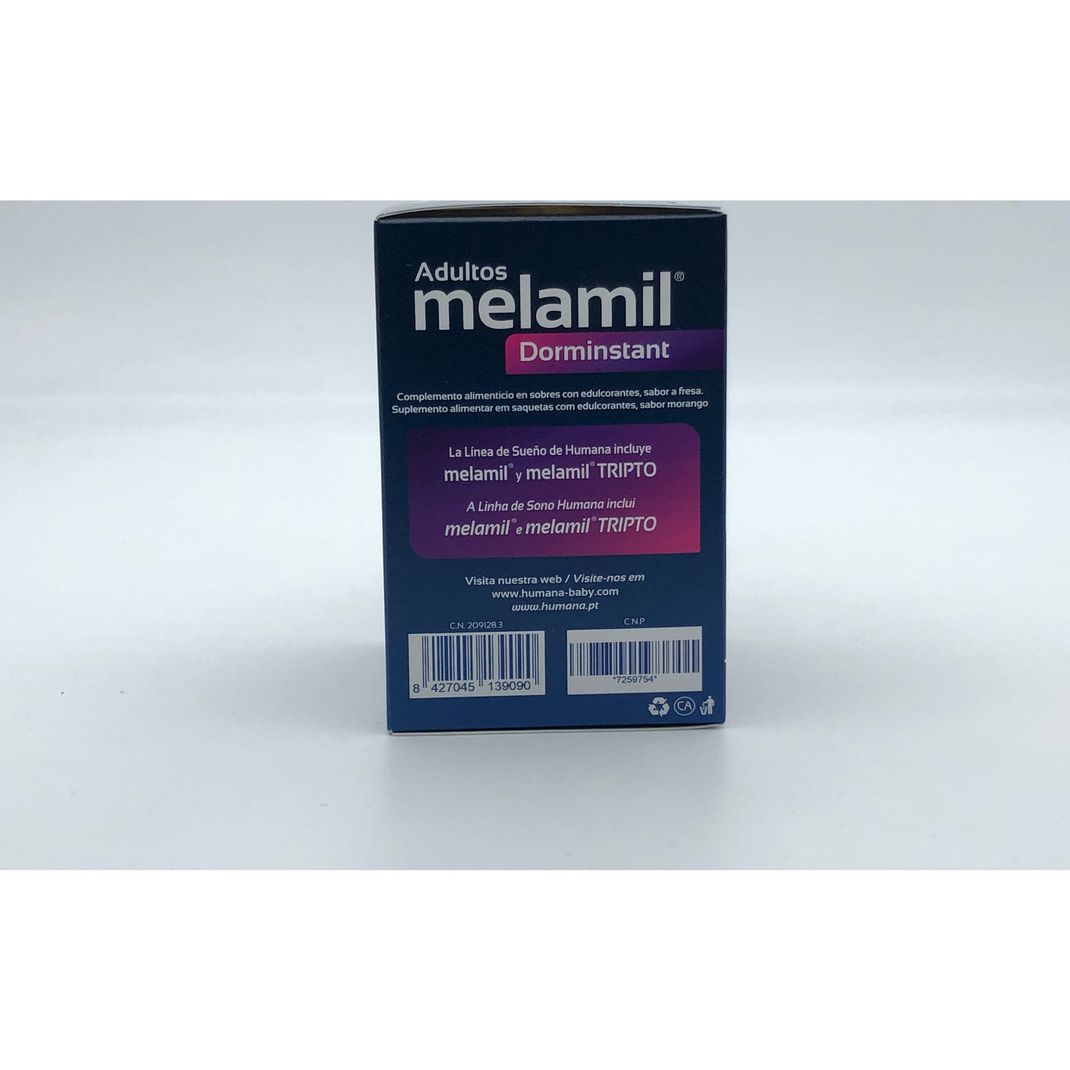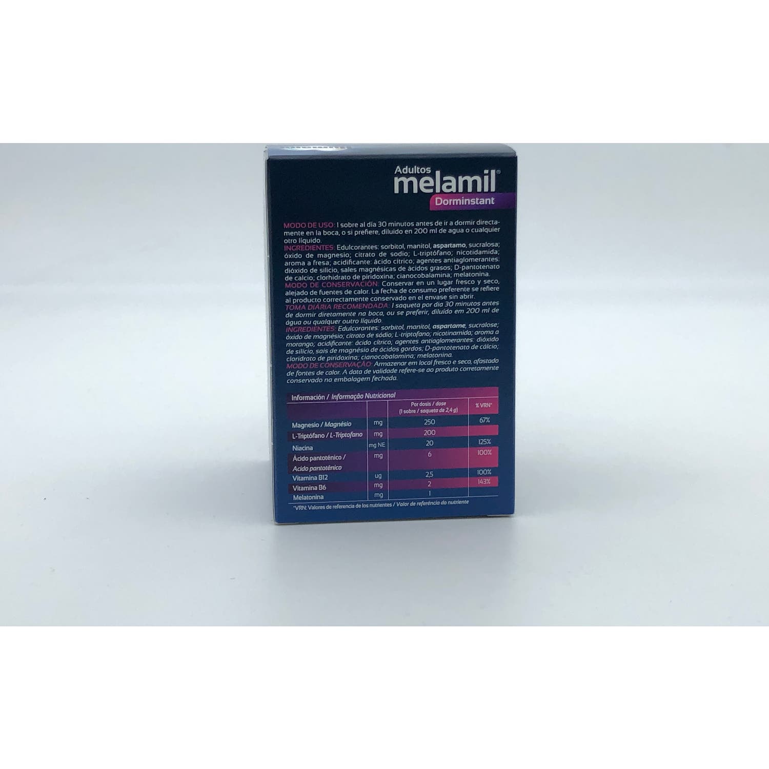 Melamil Dorminstant Adultos 24sobres es un complemento alimenticio en sobres que facilita la conciliación del sueño y ayuda a mejorar la calidad del mismo. Está elaborado a base de melatonina, triptófano y vitaminas del grupo B que ayudan a regular el ciclo de sueño-vigilia. Contiene 24 sobres.