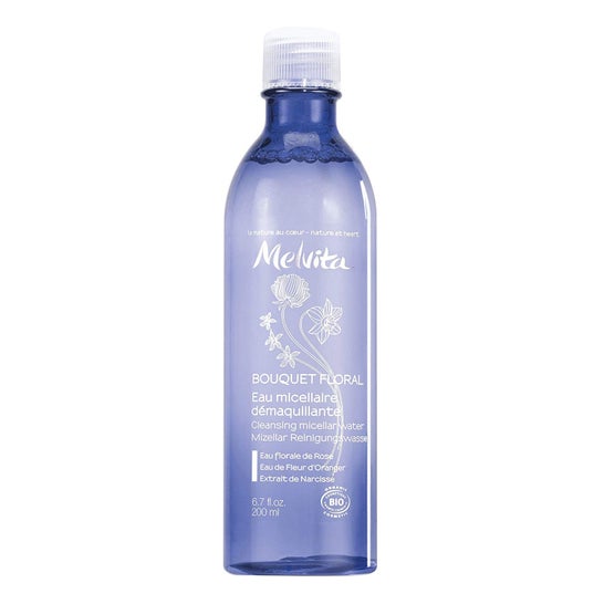 Melvita Bouq Flor Micell Agua 2 es un agua micelar ideal para la limpieza facial diaria, formulada especialmente para eliminar impurezas y restos de maquillaje mientras mantiene el equilibrio natural de la piel.