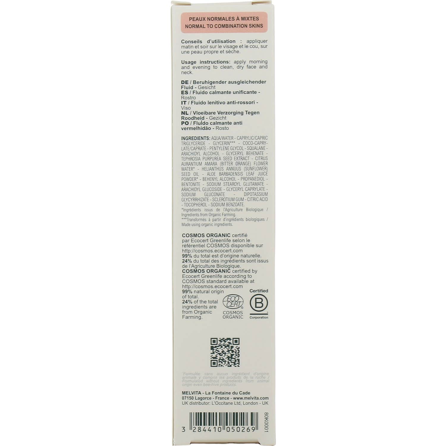 Melvita Fluido Calmante Rojeces 40ml es un producto diseñado para hidratar, calmar y reducir las rojeces en la piel. Es ideal para aquellas personas con piel normal a mixta, especialmente en situaciones que generan enrojecimiento.