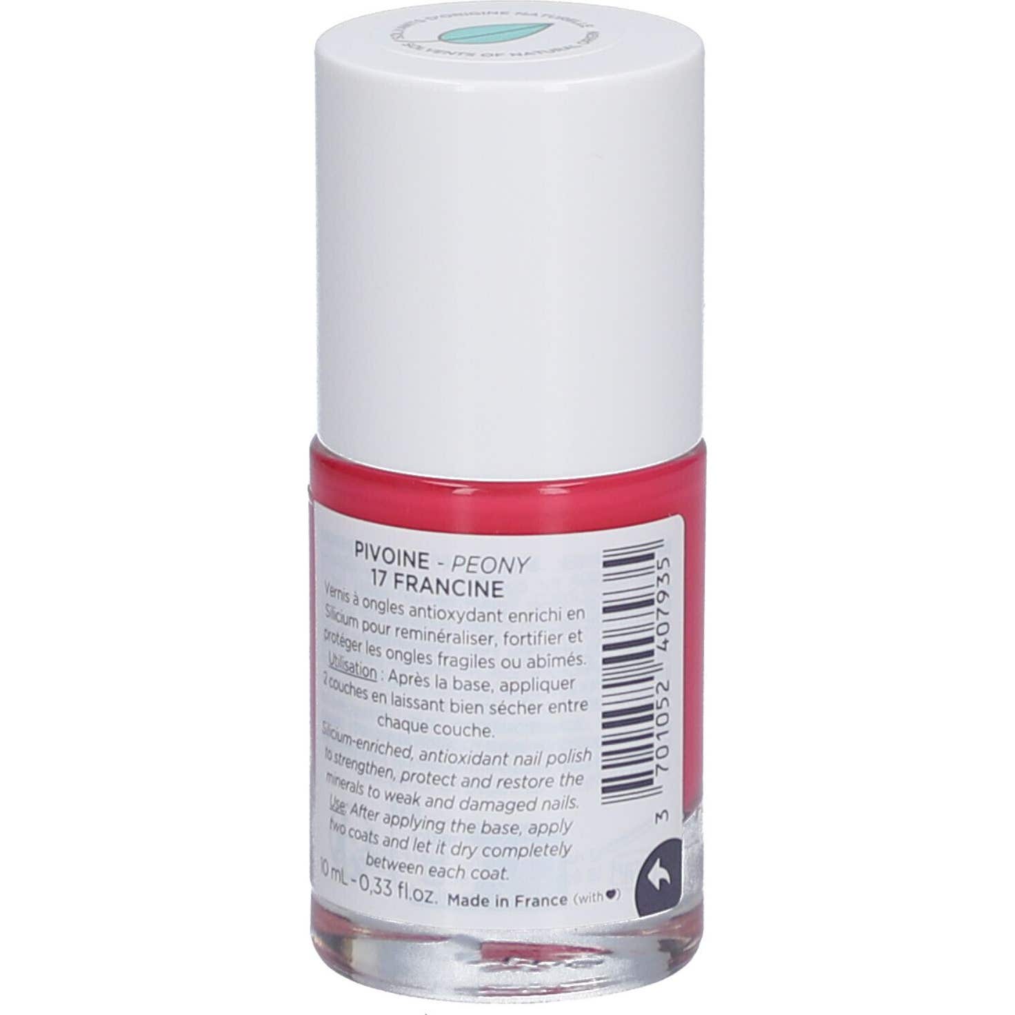 Meme Esmalte de Uñas Silicium Peonía 17 10ml es un esmalte de uñas que contribuye a aportar una pigmentación intensa a la manicura, mientras ayuda a fortalecer las uñas quebradizas o debilitadas. Tono Peonía. Contiene 10ml.