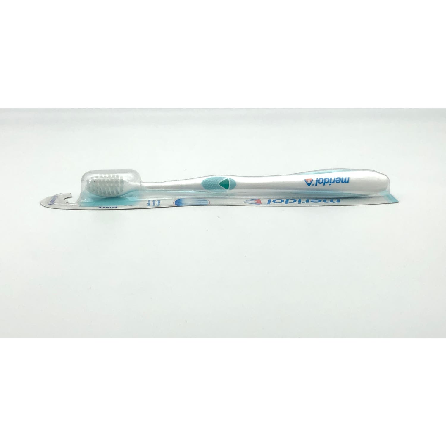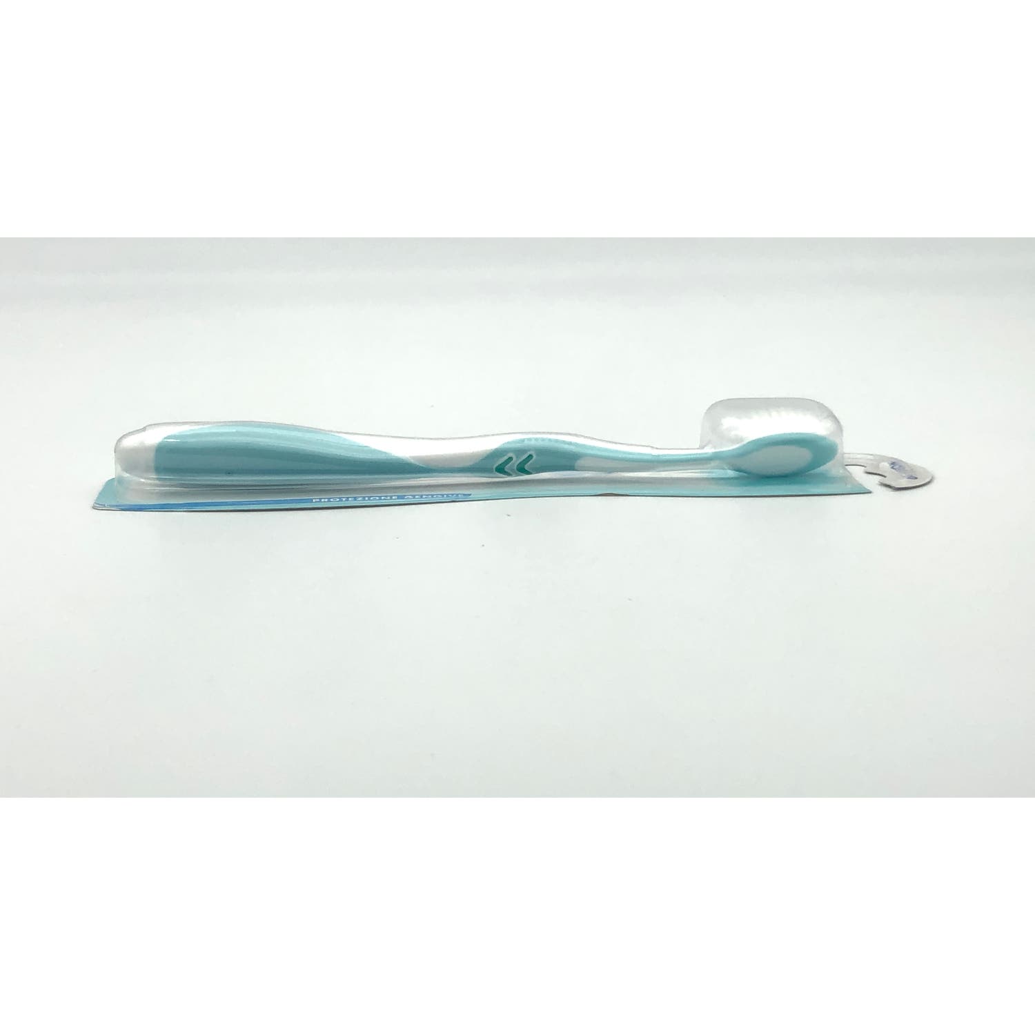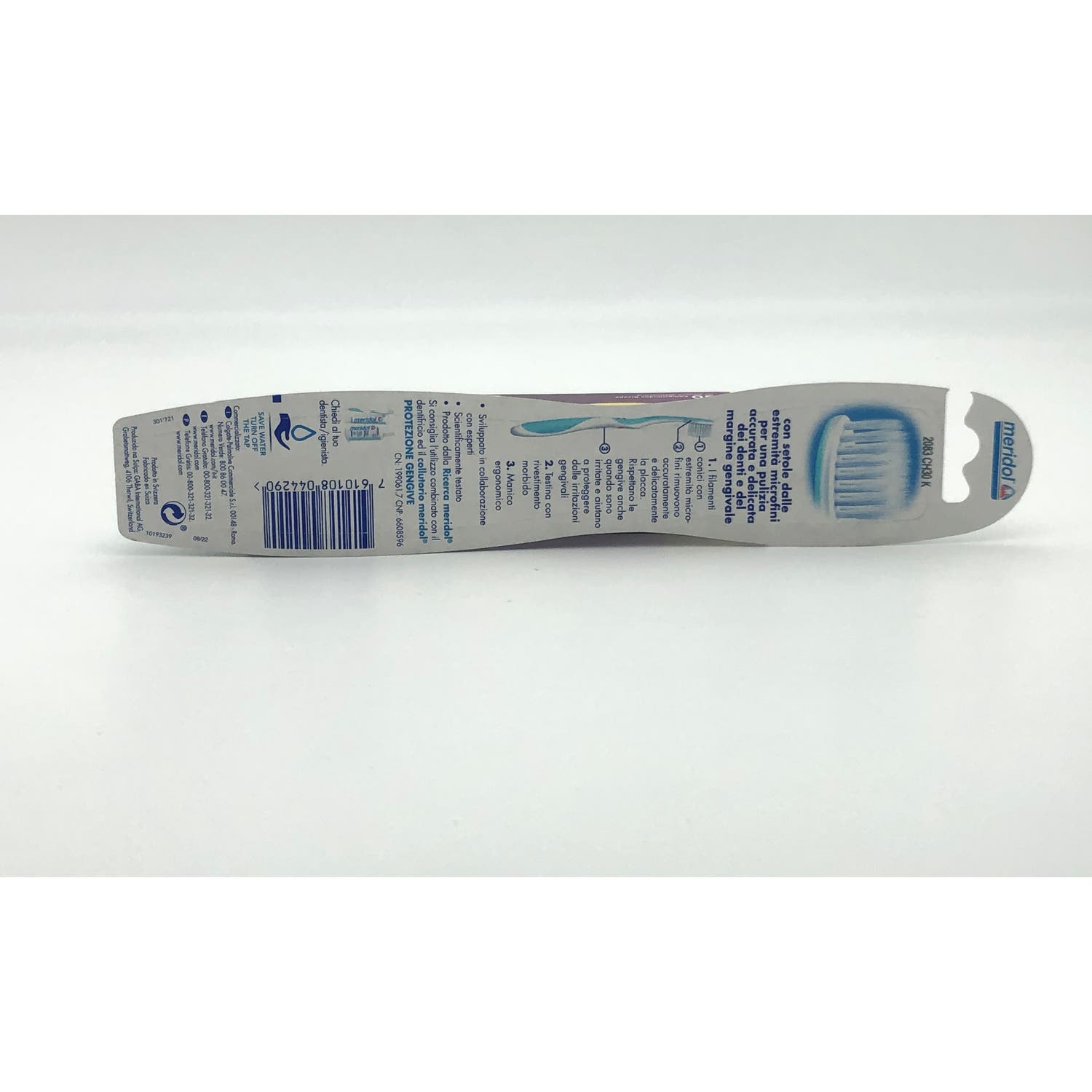 Cepillo de dientes suave que destaca por sus filamentos con puntas microfinas que ayudan a eliminar por completo los residuos de comida y la placa de la superficie de los dientes, la línea de las encías y los espacios interdentales.