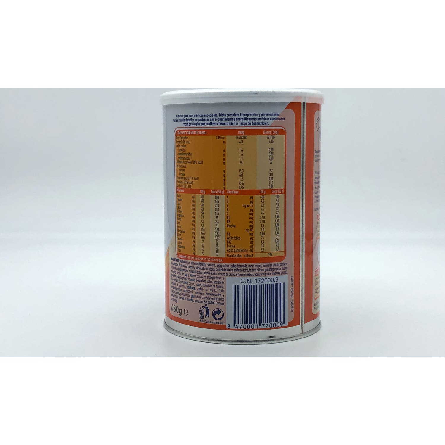 Maltodextrinas, proteínas de leche, sacarosa, leche entera, leche desnatada, cacao magro, minerales (citrato potásico, cloruro potásico, citrato sódico, carbonato cálcico, cloruro sódico, pirofosfato férrico, sulfato de zinc, fosfato cálcico, gluconato cúprico, sulfato de manganeso, yoduro potásico, molibdato sódico, selenito sódico, cloruro de cromo y fluoruro sódico), aceites vegetales (nabina y girasol), emulgentes (lecitina de soja y ésteres cítricos de monoglicéridos y diglicéridos de ácidos grasos), vitaminas [L-ascorbato sódico (C), acetato de DL-α-tocoferilo (E), D-pantotenato cálcico (B5), niacina (B3), clorhidrato de tiamina (B1), clorhidrato de piridoxina (B6), riboflavina (B2), acetato de retinilo (A), ácido pteroilmonoglutámico (B9), colecalciferol (D), filoquinona (K), cianocobalamina (B12) y D-biotina (B8)], aromas y antioxidantes (palmitato de ascorbilo y extracto rico en tocoferoles).