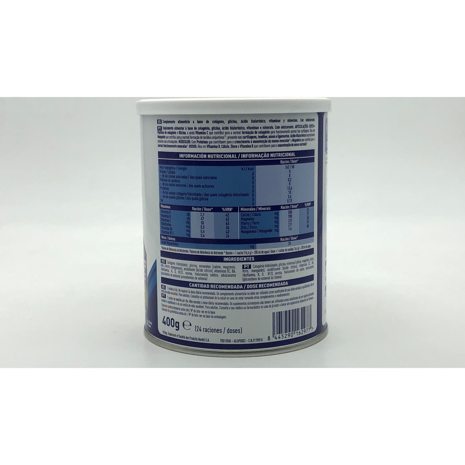 Está formulado ácido hialurónico, colágeno hidrolizado, glicina, vitamina C y magnesio. Además, está enriquecido con 9 vitaminas y minerales, que contribuyen a mantener la movilidad y flexibilidad.