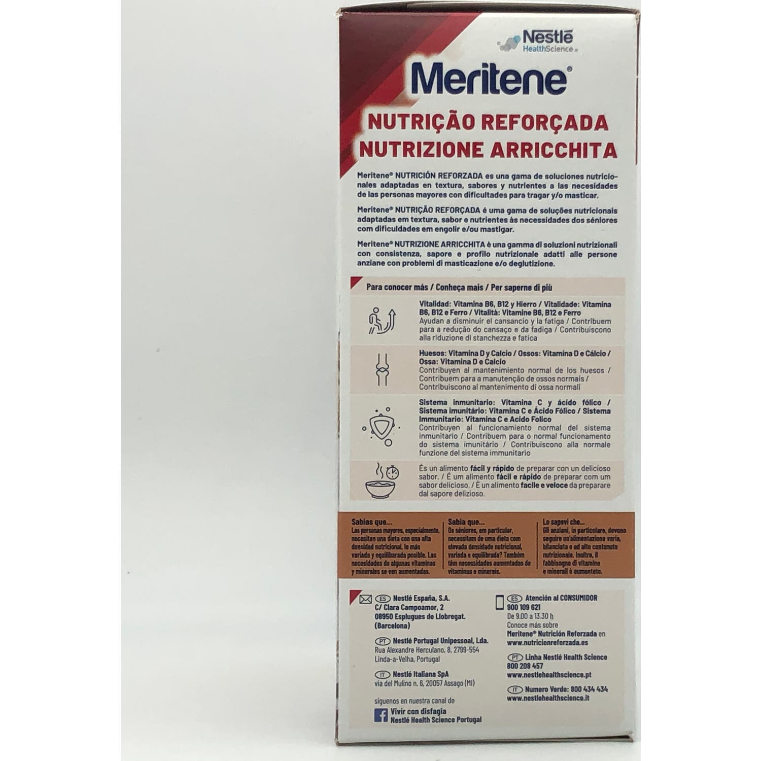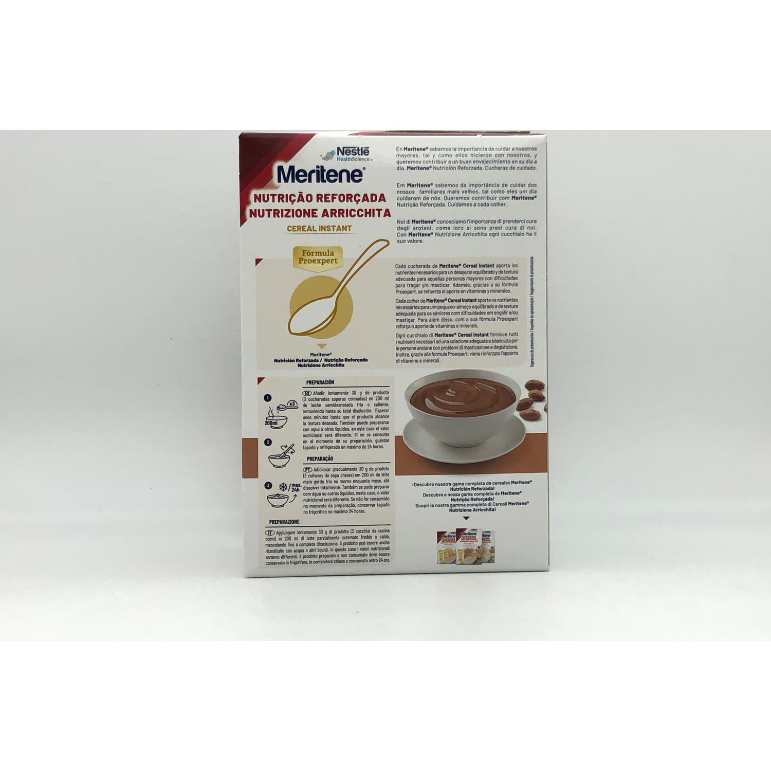 Nestlé Meritene Nutrición Reforzada Cereal Instant Cereales con Cacao 600g es una crema de cereales de fácil ingesta rica que aporta vitalidad por su contenido en vitaminas y Hierro. También contiene vitamina D y Calcio, para el mantenimiento de la salud muscular y ósea.